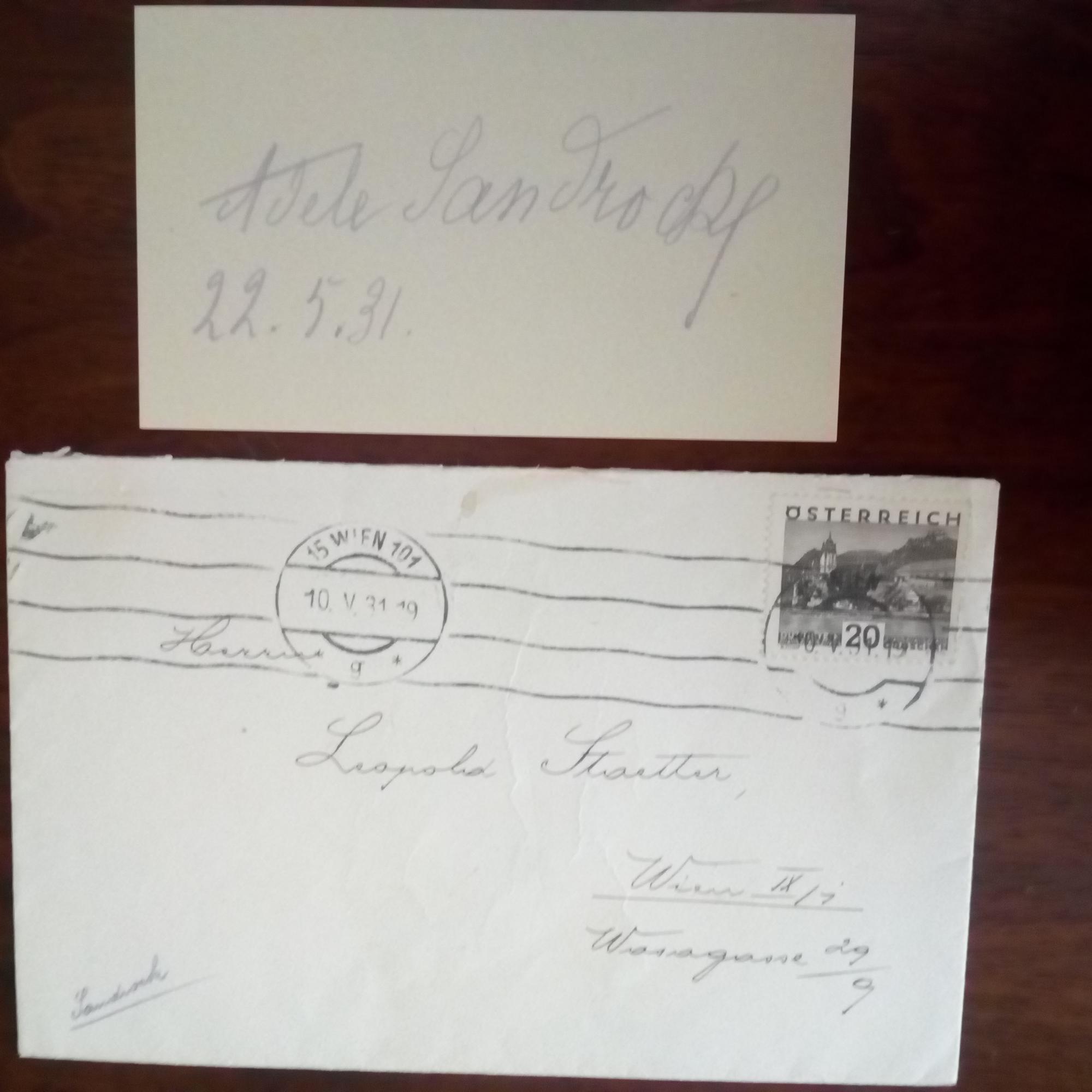 1864-1937, Schauspielerin - Kärtchen mit U. und D. 22.5.1931, Bleistift. Mit postal. Umschlag.