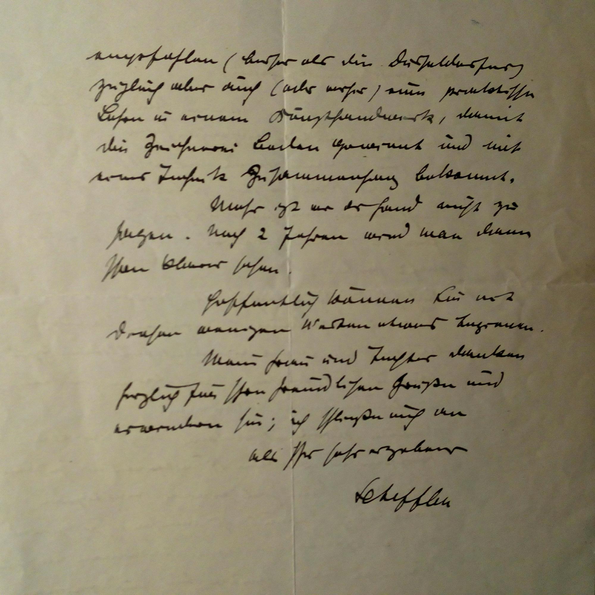 1867-1913, Kaufmann und Rittmeister, Sohn und Nachlassverw. des Dichters Joseph Victor von Sch.(1826-86) - E. postal. Postkarte mit U., Karlsruhe 18.2.1899, dicht geschr., gekn. An den Maler und Graphiker Heinrich Zernin (1868-1951) in Darmstadt: Dankt für ein Gedenkblatt für seinen Vater und ...der Krug ist nicht vergessen, ich habe aber an den fest vernagelten Mettnau-Kisten noch nicht rütteln können... (Mettnau: Halbinsel im Bodensee, Sommerresidenz des Vaters).