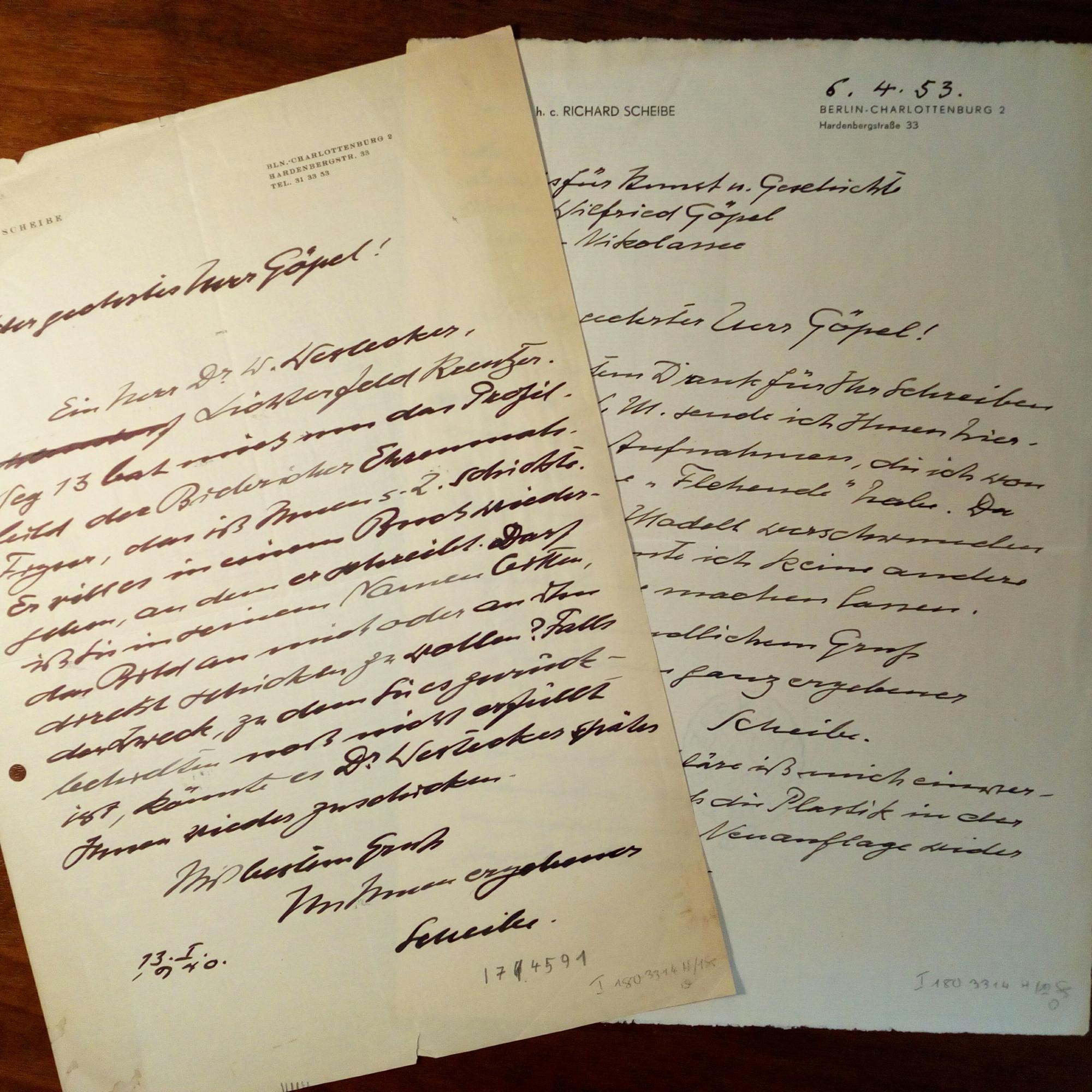1879-1964, Bildhauer - 4 e. Briefe mit U., (Berlin) 1939, 1939, 1940 und 1953, zus. 4 S. 4°, Briefkopf, gel., Altersspuren, einer mit e. postal. Umschlag. An den Kunstjournalisten und Archivar Wilfried Göpel (1908-90) in Berlin mit Details zu Fotoaufnahmen seiner Werke (versch. Anlässe). Erw. u.a. den Kulturhistoriker Wilhelm Westecker.