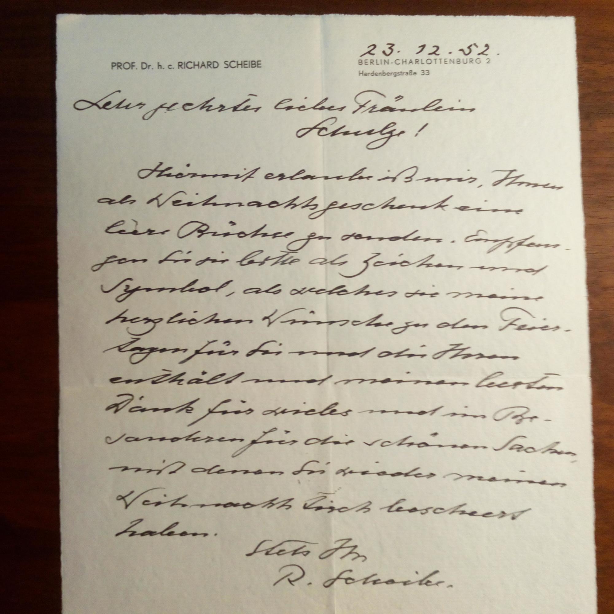 1879-1964, Bildhauer - 4 e. Briefe (zus. ca. 5 S. 8°) mit U., Briefkopf, mit postal. Umschlägen und 5 e. Karten (3 davon Werk-Ansichtskarten, 2 postal.). Berlin 1949-64. An die Schwester des Archivars und Historikers Johannes Schultze (1881-1976), Lieselotte, in Berlin: Verabredungen, Geldschulden an sie, Glückwünsche u.a. Dazu Werk-Ansichtskarte mit Widm., 2 Telegramme, Einladung zu einer Ausstellung, Kondolenzschreiben zu seinem Tod u.a.