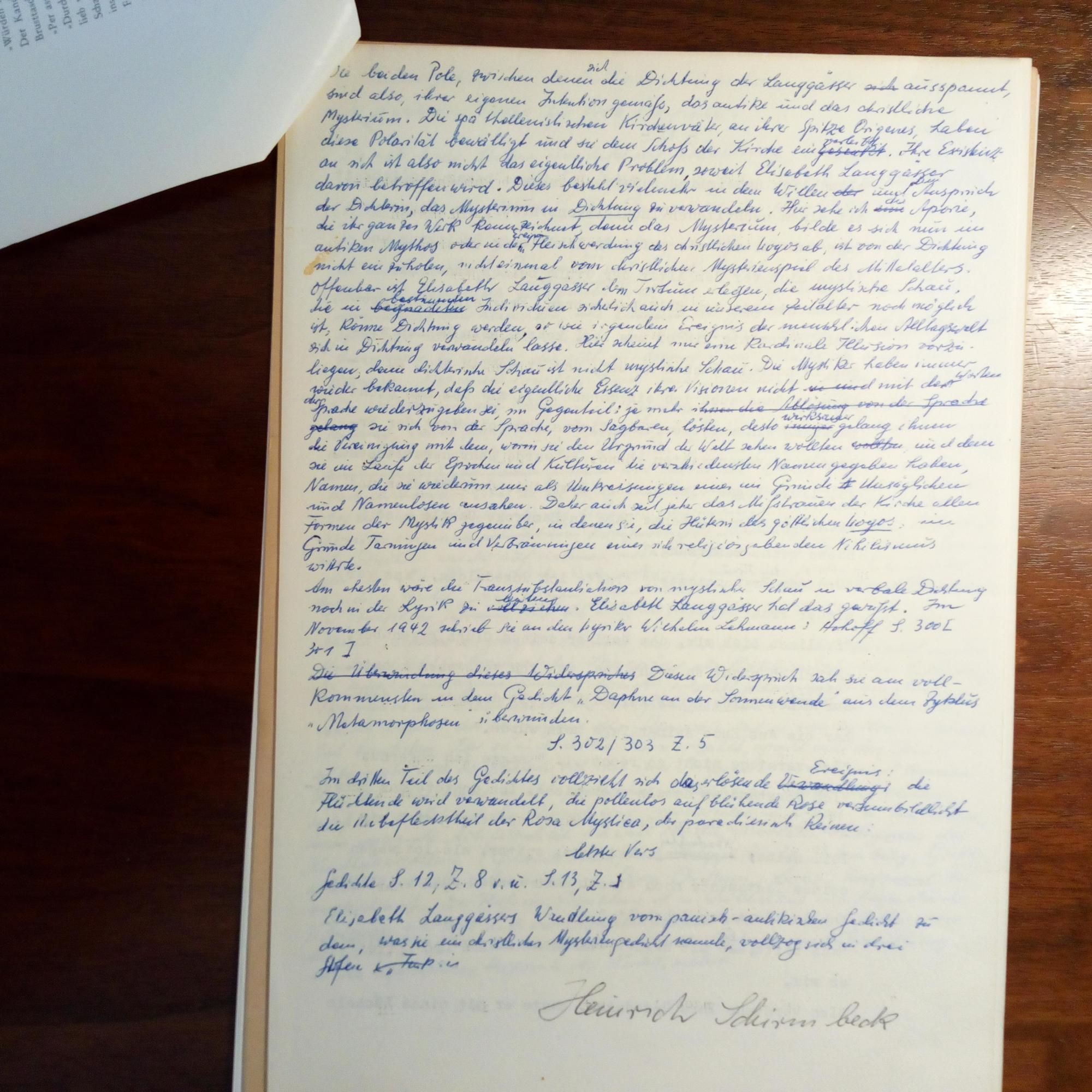 1915-2005, Schriftsteller und Kulturphilosoph - E. Manuskript (Reinschrift: Deckblatt und 13 e., dicht geschr. 4°-Seiten, 3 U. darin). "Die Kunst und das 'tremendum' (Ilumanistische Ästhetik und christliches 'tremendum'). Das Dilemma der Elisabeth Langgässer...". Beiliegen Kopien von Zeitungsausschnitte und kl. Verl.werbung, je mit U.