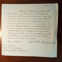 1862-1941, Schriftst. - E. Rezension mit U., 1 S. 4°. Zu Hanns Maria Braun (1910-79, Schriftsteller und Regisseur): "Das Fest des Jahres" (Heitz-Verl., Straßburg 1933). Beiliegt e. Kurzbrief mit U. und Karte mit mont. kl. Druck-Pfo. mit U. Alles mit ger. Gebr.spuren.