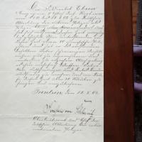 1834-1910, preuß. Offizier u. Ozeanograph - Urkunde m. U., Tientsin (China) 15.8.1902, 1 S. folio, kl. Altersspuren. Dienstzeugnis als "Chef der deutschen Abteilung der internationalen Polizei" für Feldwebel Ebsen: ...Auch gelang es ihm mehrfach Waffenfabriken, Falschmünzer und Diebesbanden ausfindig zu machen und ... über 30 Räuber zu fangen...