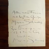 1818-91, schweiz. Bildhauer - E. Brief mit U., (Basel) 21.5.1885, 1 S. 8°, kariertes Papier. Ger. Altersspuren. An Häfliger in Luzern: Lehnt Anfrage ab. ...ich in Cassel mein Atelier seit dem Abgang meines Neffen (Achilles Sch., 1858-1904, Bildh.) nach Rom aufgegeben habe...