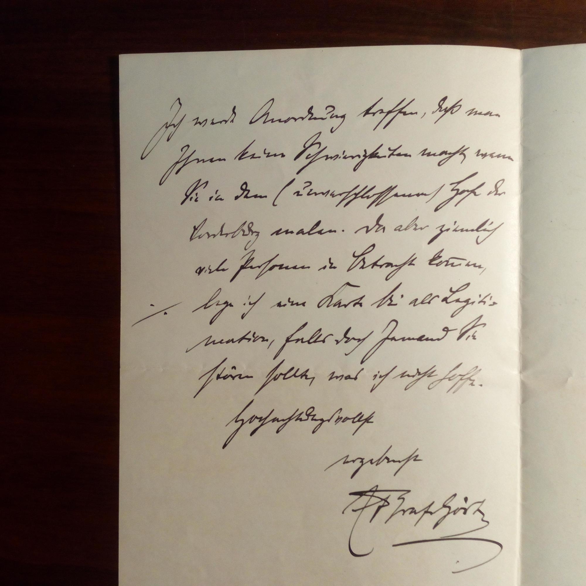 gen. "Graf von Görtz", 1851-1914, hess. Burggraf, Politiker und Bildhauer - E. Br. m. U., Schlitz 15.5.1908. Erlaubt dem Maler Paul Heydel (1854-1935), im Hof der "Vorderburg" zu malen. Erw. den Restaurator Bodo Ebhardt (1865-1945). Dazu Visitenk. m. e. Z., U., O. u. gleichem D.: Legitimation, die Burg zu betreten.
