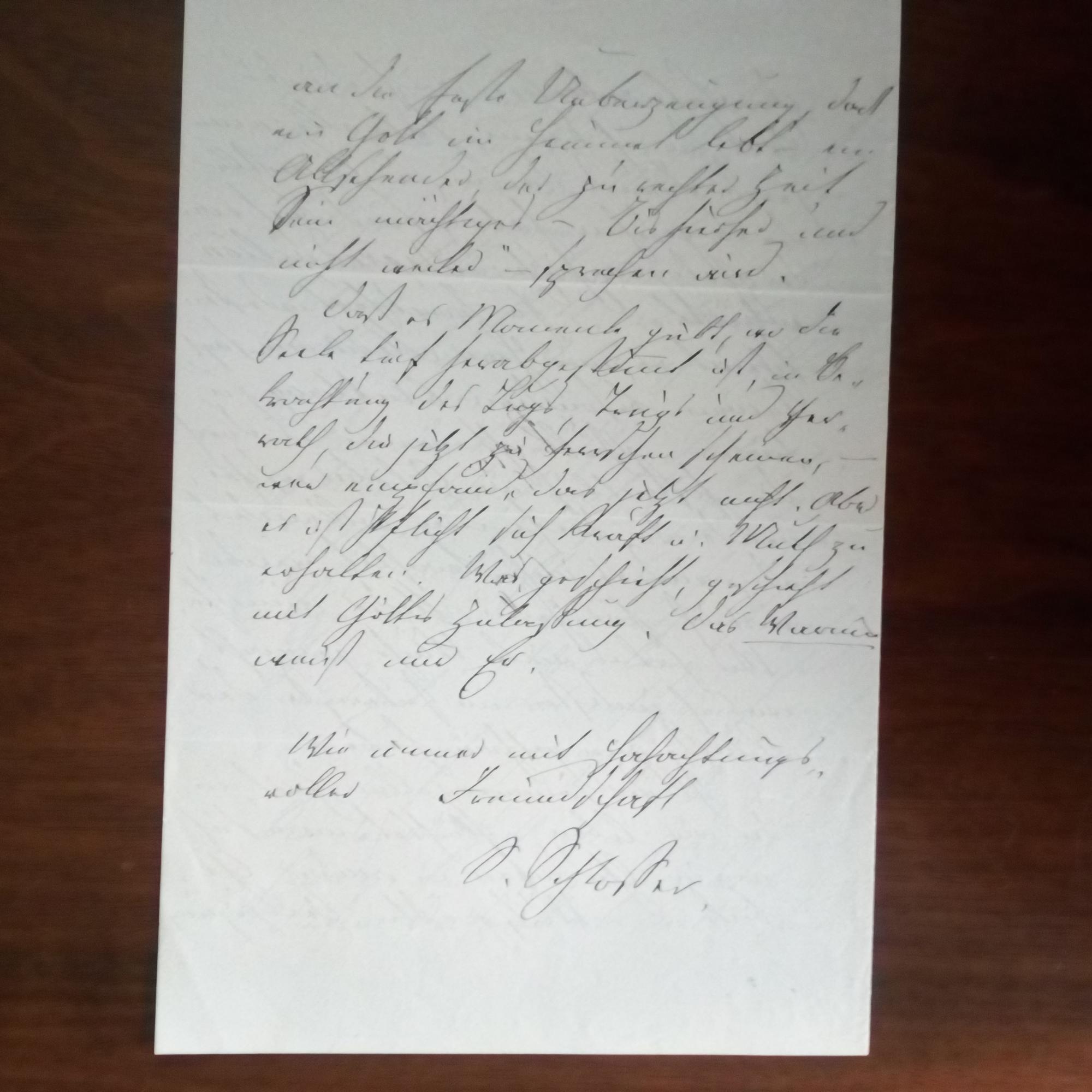 1826-90, evangel. Theologe, Freund und Mitarb. von Bodelschwingh - E. Brief mit U., Stift Neuburg (bei Heidelberg) 12.9.1860, 4 S. gr.8°, Sammler-Beschriftung. Will Fotos und Zeichnungen an Oberbaurat Heinrich Hübsch (1795-1863, Architekt in Karlsruhe) weiterleiten. ...Künstler die es gesehen haben, sind auch von der photographischen Reproduction entzückt...feste Ueberzeugung, daß ein Gott im Himmel lebt...