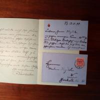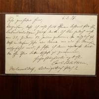 1859-1937, Berliner Bankier - E. Brief mit U., Drehsa 24.5.1899, 2 S. 8°. An den Maler Paul Heydel (geb. 1854) in Berlin: Lädt ihn zu einer Ausstellung ein. Beiliegt schöne e. Briefkarte, kl. Wappen am Kopf, mit e. postal. Umschlag, an dens. mit ähnl. Inhalt.