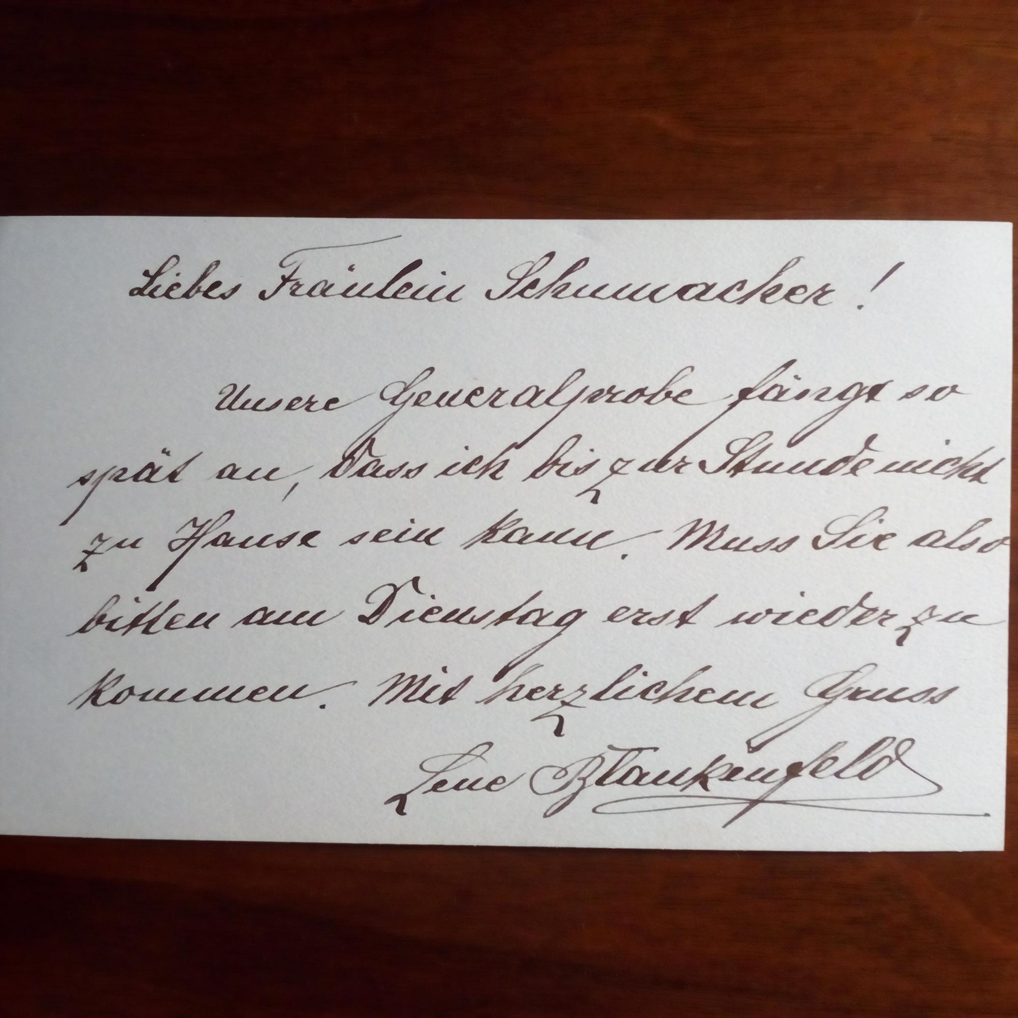 1876-1943, Schausp. (38 Jahre am Mannheimer Nationaltheater) - E. Br.karte m. U., 1 S. An Frau Schumacher: ...General-probe fängt so spät an, dass ich bis zur Stunde nicht zu Hause sein kann...