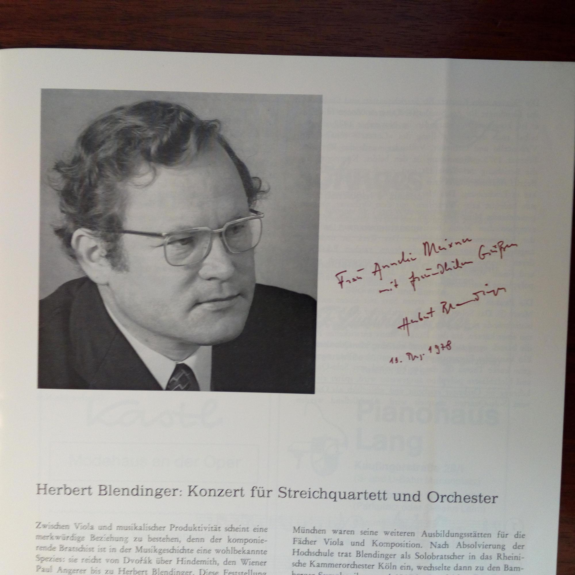 1936-2020, Bratschist und Komponist - Programmheft "5. Konzert des Bayer. Staatsorchesters" am 5.4.1976 im Nationaltheater München mit Widm. und U. neben Pfo., Knickspur.
