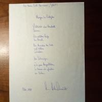 1930-2005, Schriftsteller - E. Gedicht ("Morgen im Frühjahr", 11 kurze Zeilen), Okt. 1988, Widm. dünn am Kopf.