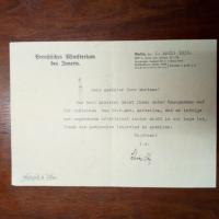 1886-1955, Jurist und Politiker - Brief mit U., 1 S. 8° quer, (Berlin) 1.4.1933, Briefkopf als "Kommissar für Sonder-aufträge" im Innenministerium. An den frz. Fliegerei-Journalisten Jacques Mortane (1883-1939): Teilt ihm im Namen von Innenminister Hermann Göring mit, "daß er infolge der ungeheueren Arbeitslast leider nicht in der Lage ist, Ihnen das gewünschte Interview zu gewähren...".