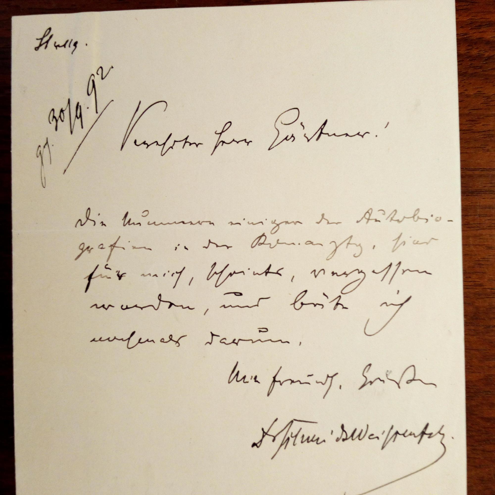 1833-93, histor. Schriftsteller und Politiker - E. Kurzbrief mit U., 1 S. kl. 8°. Stuttgart, Eing.vermerk 30.9.1892. An Güntner: Da einige "Nummern der Autobiografien" vergessen worden seien, bittet er nochmals darum.