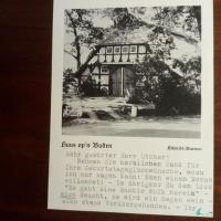 1902-96, Schriftsteller - Postal. Ansichtskarte (sein "Huus op'n Bulten") m. U., Lilienthal o. D., gedr. Abs. An den Kollegen Kurt Stöber in Hamburg: ...Eben einen Roman vollendet! - Im übrigen: Zu dem Lied "Es geht eine dunkle Wolke herein"... und erklärt die Herkunft seines Namenzusatzes "Barrien".