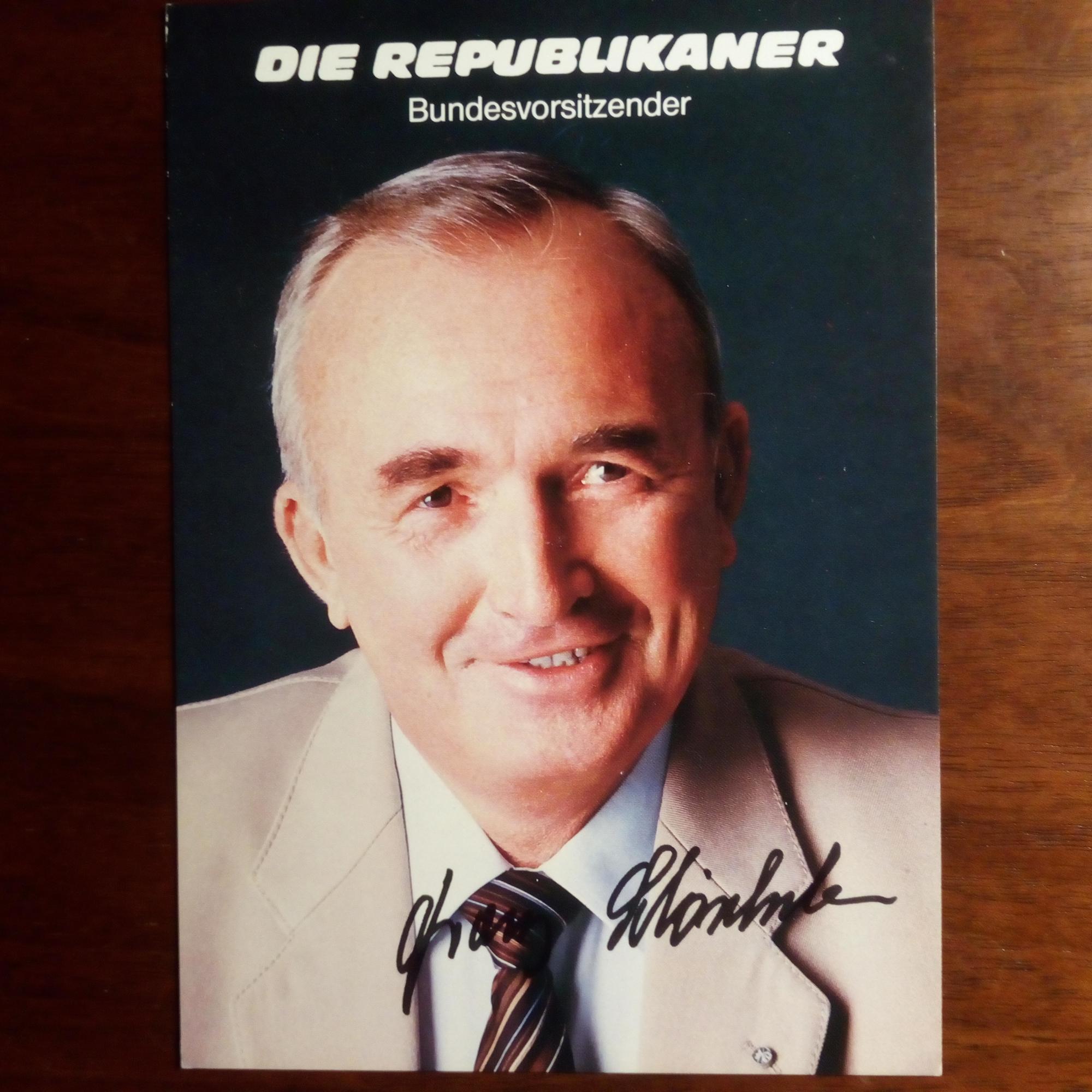 1923-2005, rechtsextremer Politiker, Gründer und Vorsitzender der Partei "Die Republikaner" - Farb-Pfo. mit U.