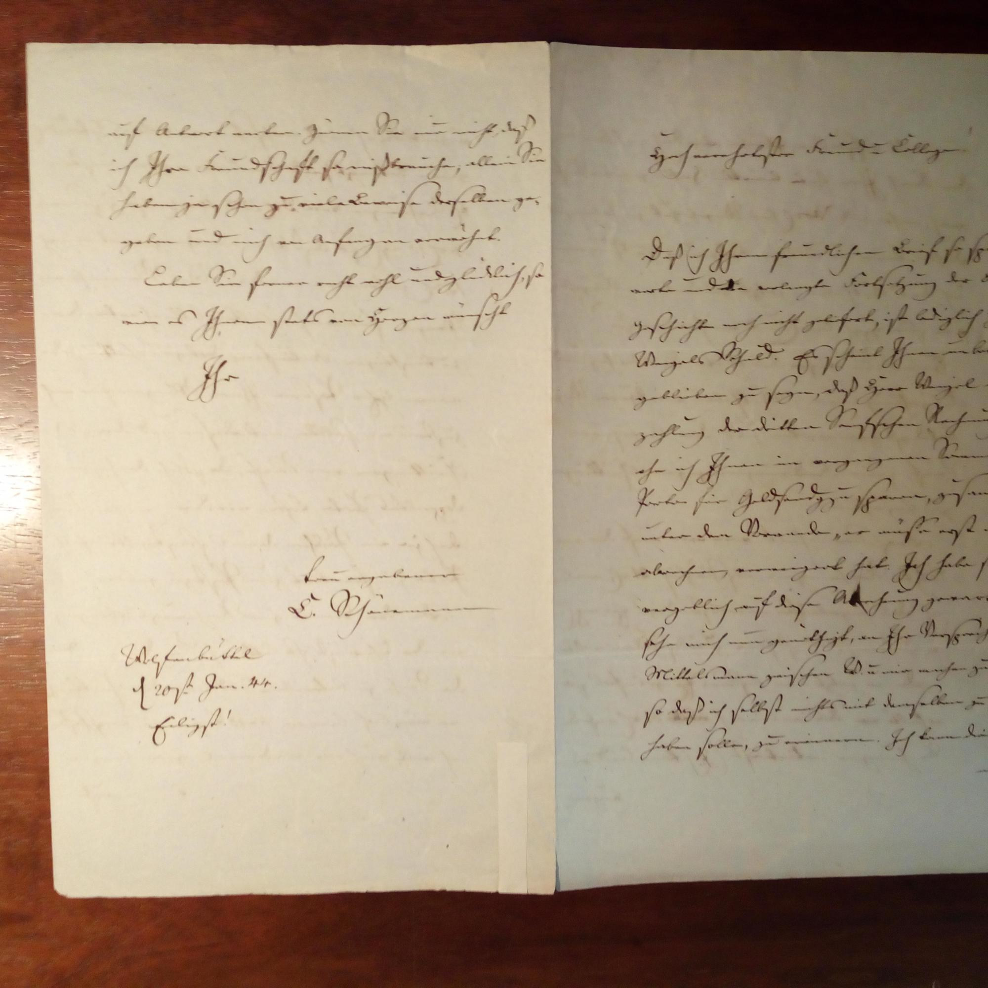 1801-55 (Cholera), Bibliothekar in Wolfenbüttel - E. Brief mit U., Wolfenbüttel 20.1.1844, 4 S. gr. 8°, ger. Altersspuren. An einen Kollegen betr. einer offenen Rechnung des Antiquariats Senf in Leipzig. Bittet den Adressaten, in der Sache zu vermitteln.