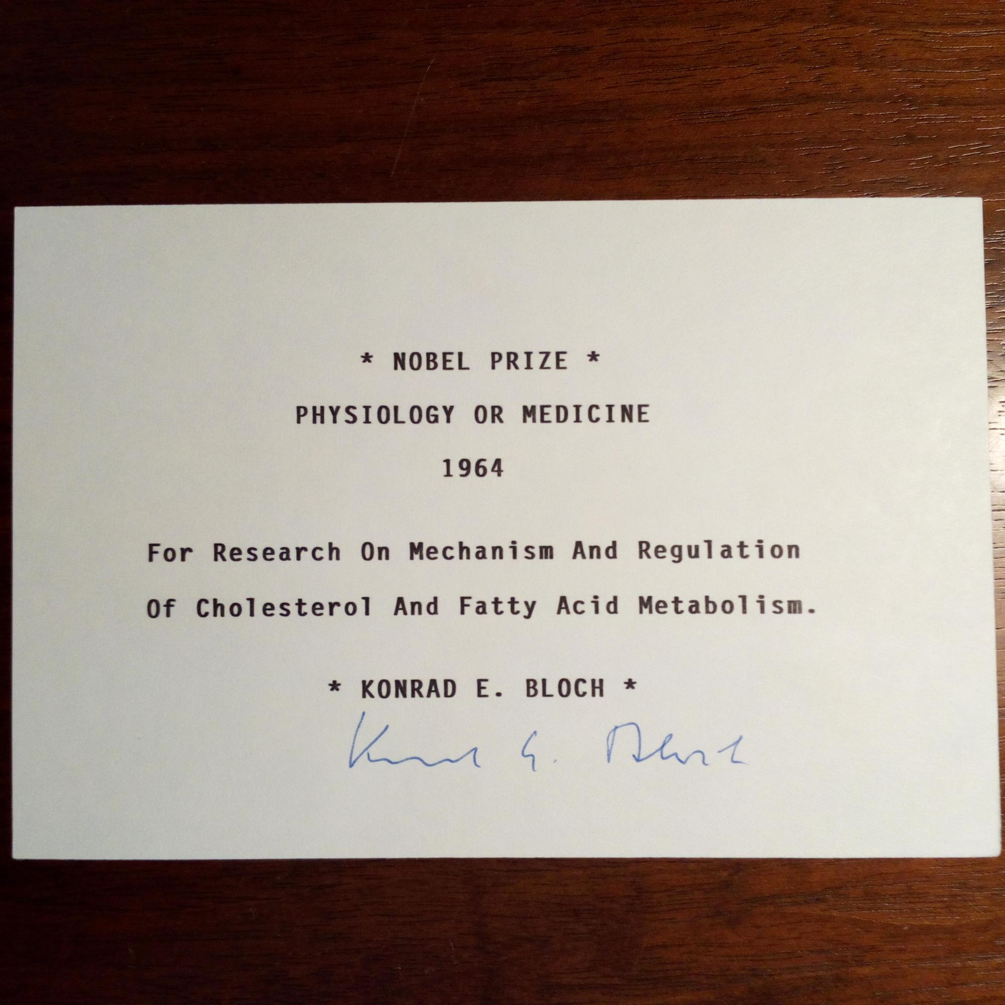 1912-2000, US-Biochemiker - Karte zu seinem Nobelpreis für Medizin 1964, mit U.