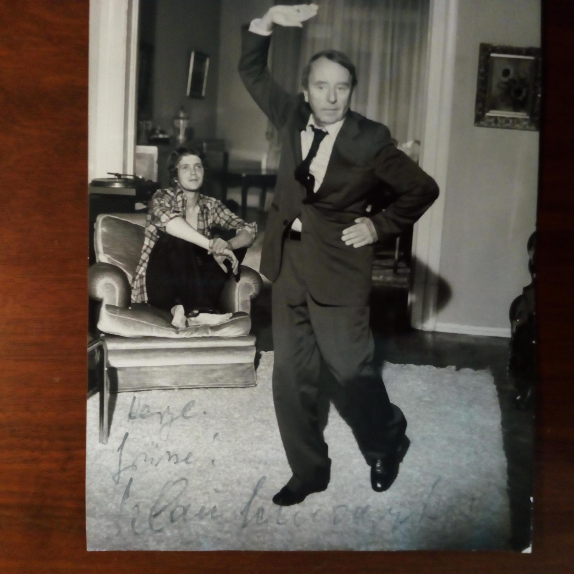 1926-94, Schriftsteller, Schauspieler und Regisseur - kl. Blatt (beschn.) mit e. Gedicht (11 kurze Z., aus "Memoriermurmeln") mit Widm. für den Kollegen Rudi Hermans, 26.10.1986. Beiliegen: 4°-Blatt mit e. Zitat, Widm. und U., Pfo. mit U. und kl. Biographieblatt, alles mit Begleitbr.karte und e. postal. Umschlag (1987).