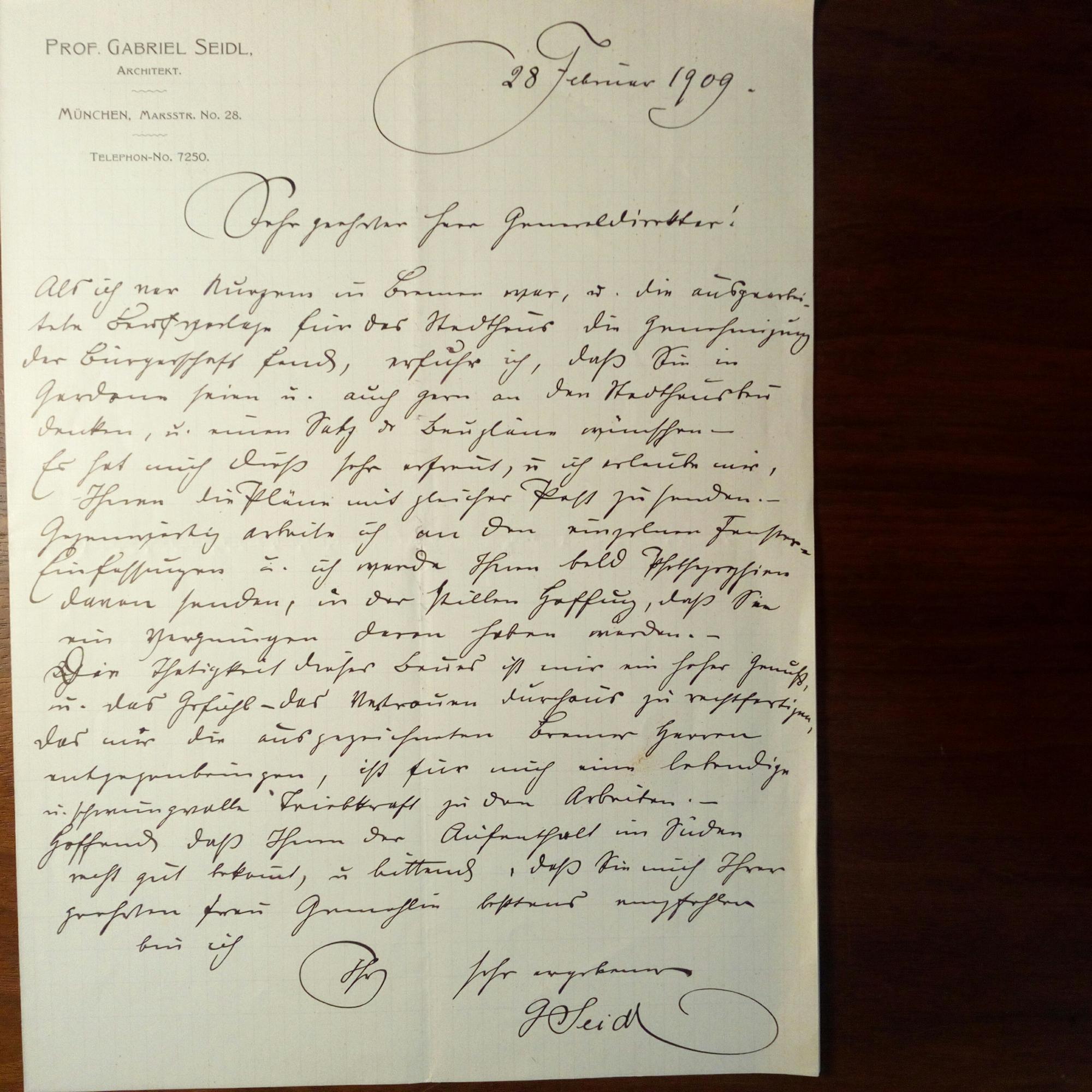 1848-1913, Architekt - 4 e. Briefe mit U., Bremen 1908/09, zus. ca. 4 S. 4°. Alle an "Herrn Generaldirektor" mit Details zum Neubau des Rathauses von Bremen (fertiggestellt im Herbst 1909).