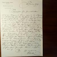 1846-1921, Maler - E. Brief mit U., München 4.9.1904, 2 S. 8°, Aktenvermerk, kl. Klammerspur, sehr sauber, an den Rändern mont. Betr. Ausstellung und Verkauf von Bildern.