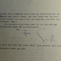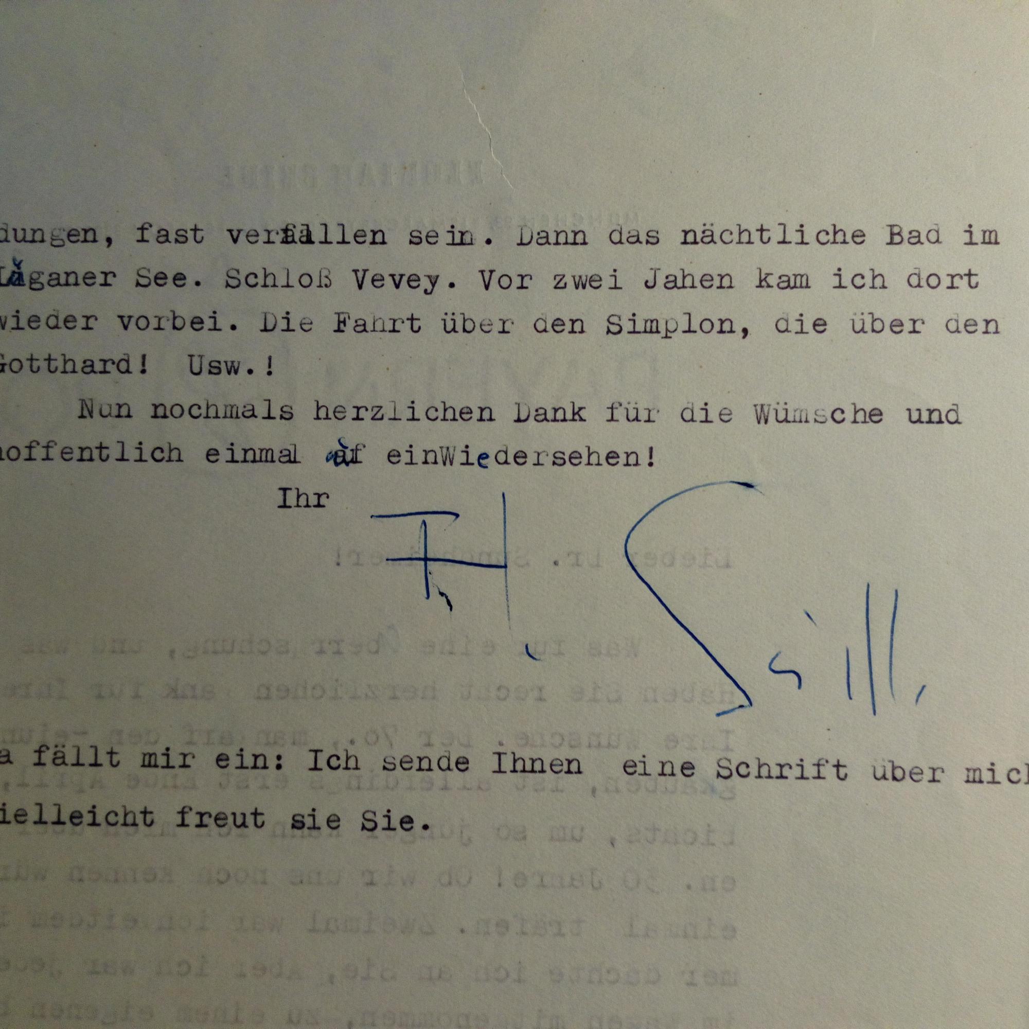 1893-1972, Schriftsteller - Brief mit U., (München) 12.2.1963, 1 ½ S. 4°, Br.kopf. Dankt dem Kaufmann Paul Sundheimer in Miesbach für Geb.wünsche. ...30 Jahre! Was haben wir erlebt, und wie sind wir darüber alle andere geworden! Oder im Grunde doch nicht? Das Rilkegrab!...Dann das nächtliche Bad im Luganer See. Schloß Vevey...