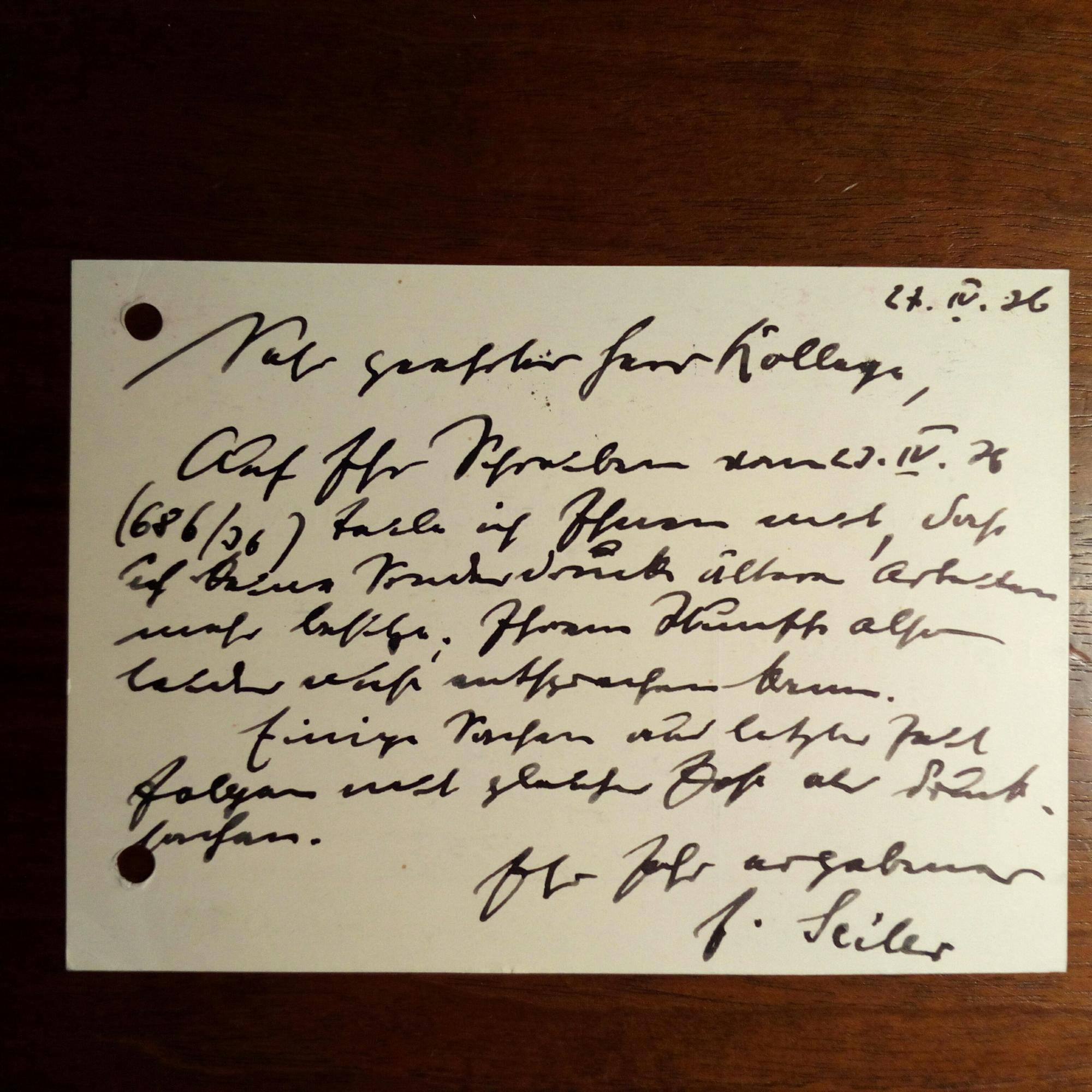 1886-1970, schweiz. Zoologe - E. postal. Postkarte m. U., (Zürich) 27.4.1936, gel. An den Humangenetiker Otmar von Verschuer (1896-1969), Leiter des "Hauses für Volksgesundheit" in Frankfurt: ...daß ich keine Sonderdrucke älterer Arbeiten mehr besitze...