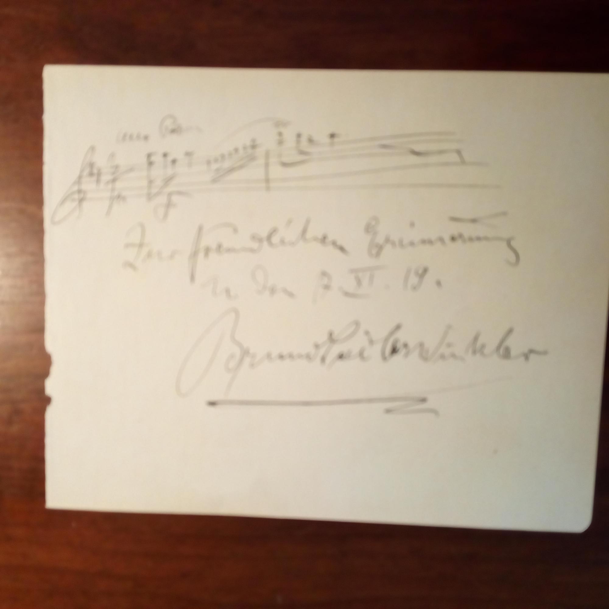 1880-1960, Pianist, Dirigent, Kapellmeister des Berliner Rundfunks - 8°quer-Blatt mit e. Notenzeile (2 Takte einer Polka) mit E., U., O. und D. Wien 17.11.1919.