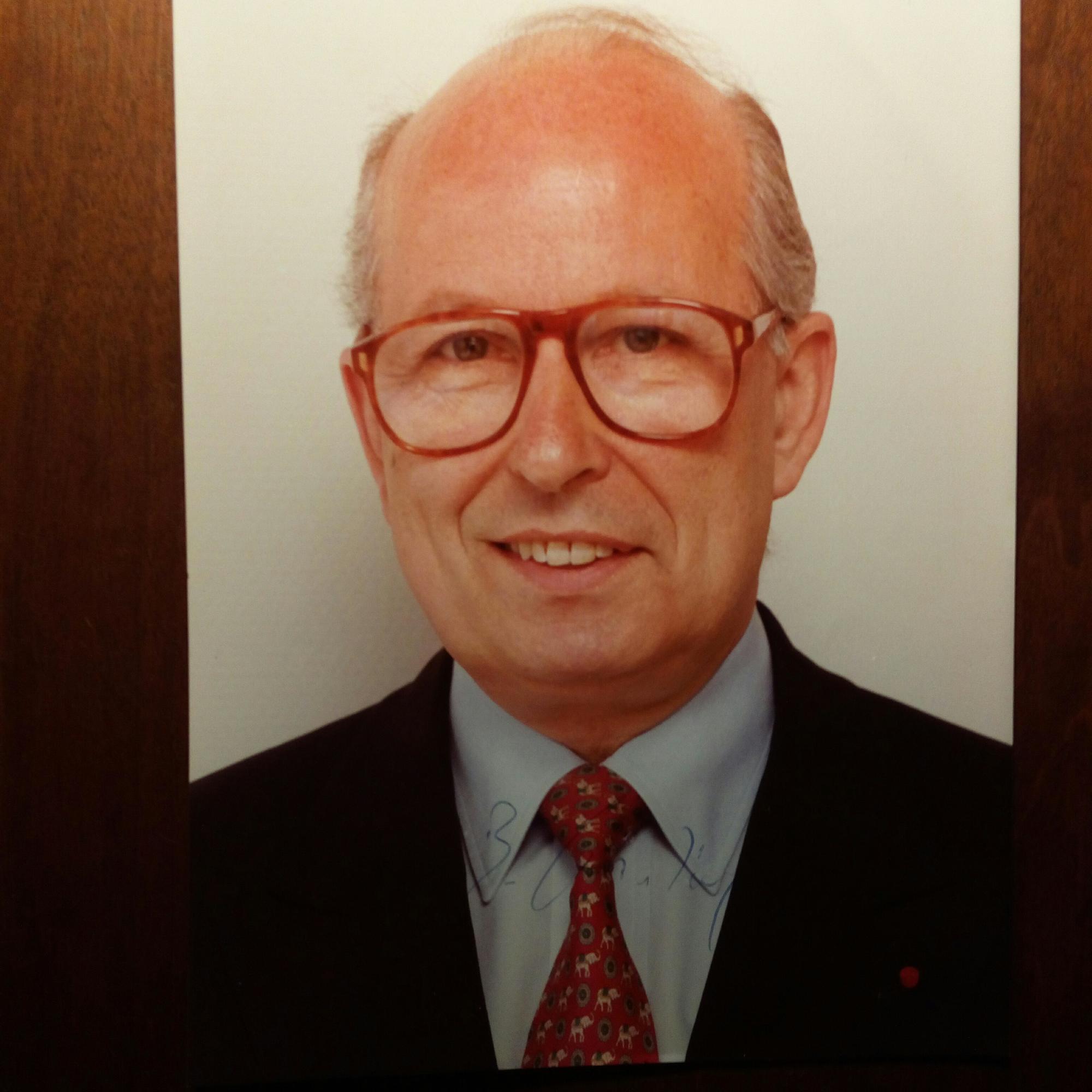 1932-2025, Jurist - Hochglanz-Farb-Pfo. (ca. 4°) mit U. Mit Begleitbrief mit U., (Berlin) 22.10.1991, Briefkopf als Vorsitzender des Aufsichtsrates des Springer-Konzerns.