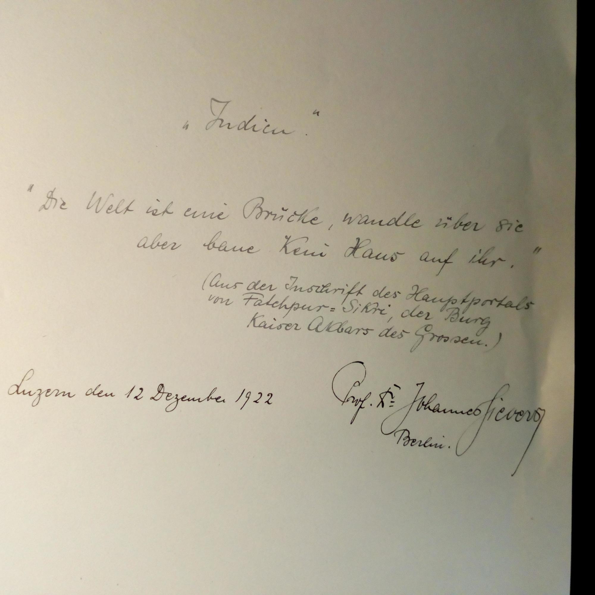 1880-1969, Kunsthistoriker - 4°-Blatt mit e. Zitat (Inschrift aus Fatehpur-Sikri) mit U., O. und D. Luzern 12.12.1922.