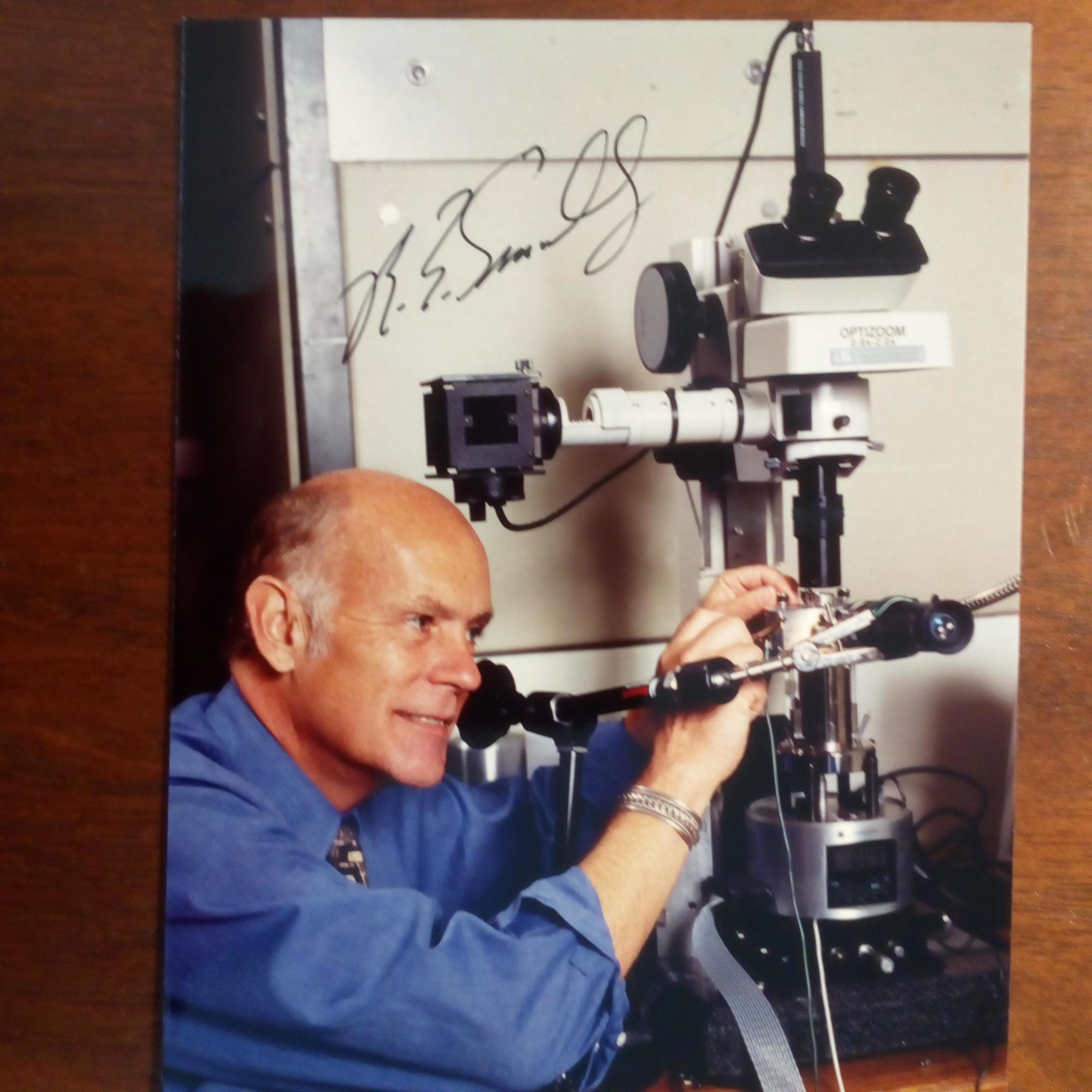 1943-2005, US-Chemiker - kl. priv. Farb-Pfo. (Hochglanz, im Labor an der von ihm entw. Laser-Kanone) m. U.