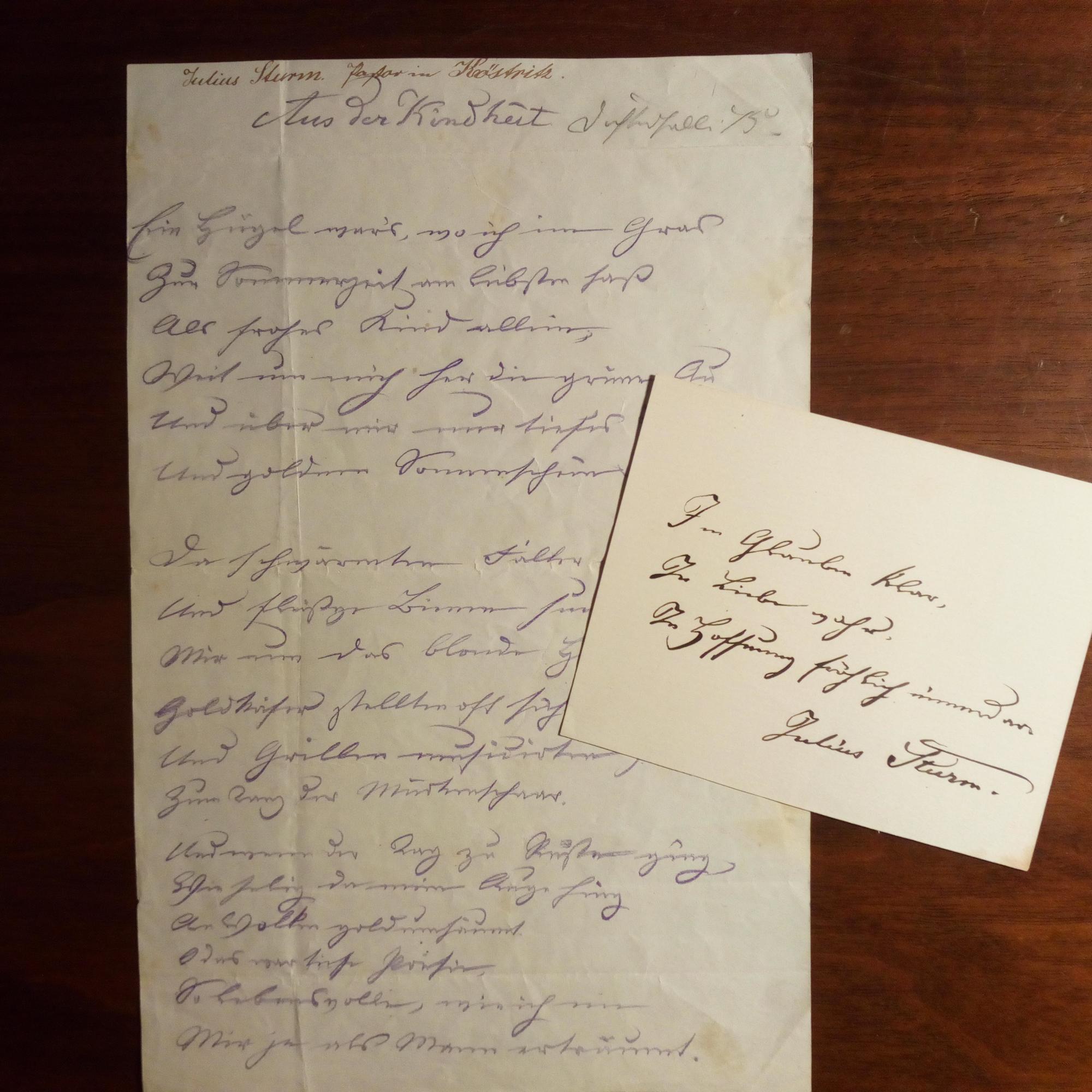 1816-96, evang. Theologe und Schriftsteller - kl. Blatt m. e. "Im Glauben klar,/ In Liebe wahr,/ In Hoffnung fröhlich immerdar" u. U.