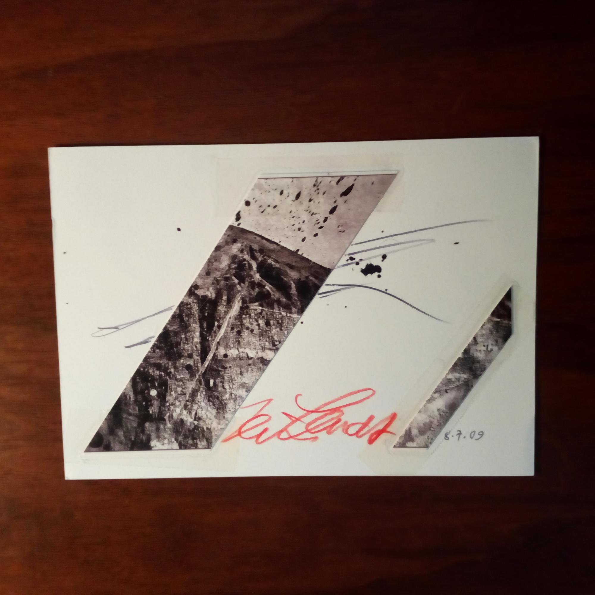 1942-2021, Graphiker - Karte mit e. Kunstwerk (Mischtechnik), U. und D. (Hamburg 8.7.2009), als postal. Postkarte.