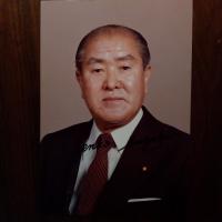 1911-2004, Premiermin. von Japan - Farb-Pfo. (ca. 8°, 1980) mit Tusche-U. (latein. Schrift). Rücks. Stempel des Amtssitzes.