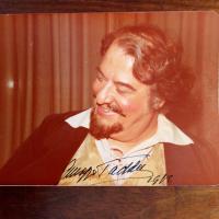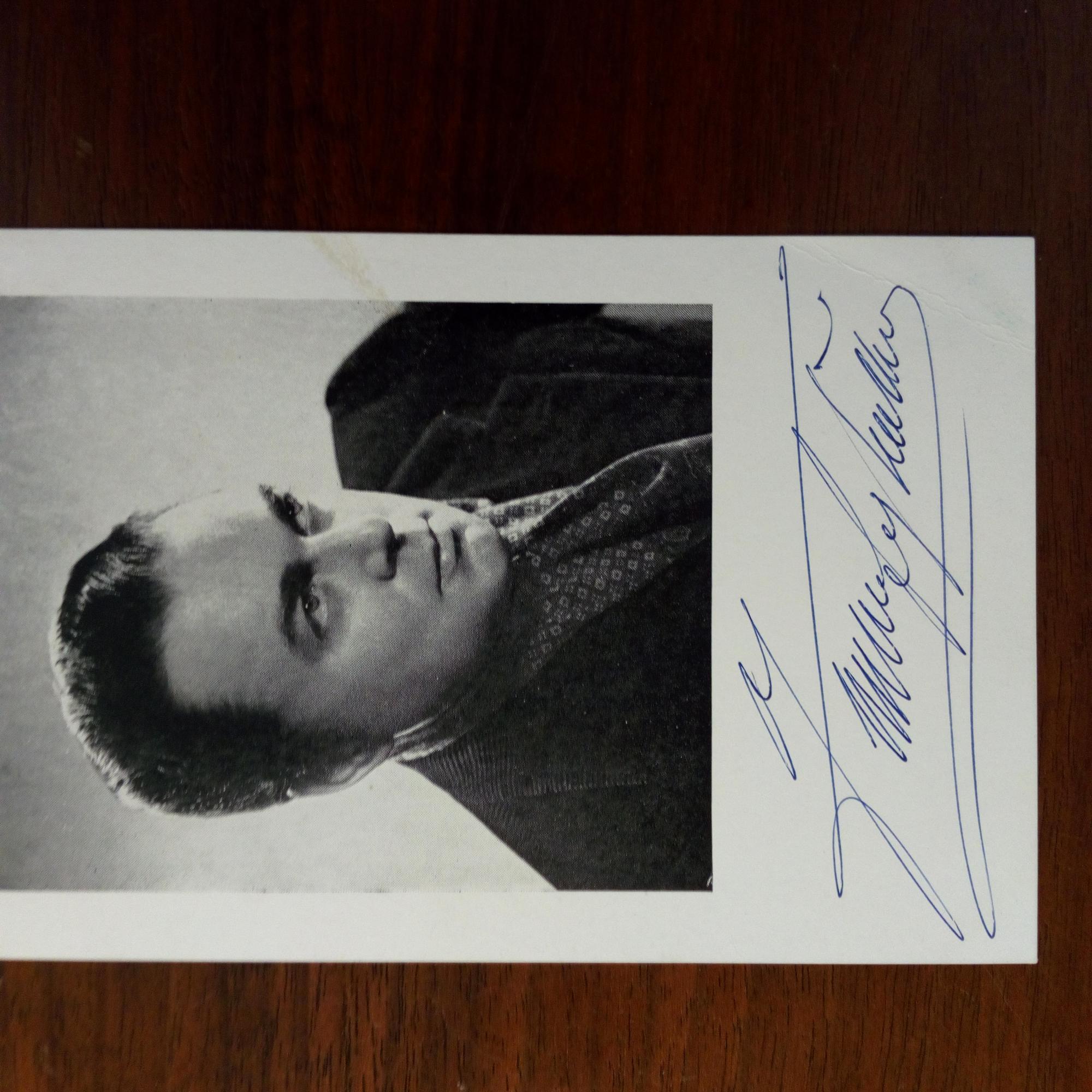 1916-2010, italien. Bariton - privates Pfo. (geschminkt) mit U. und Jahr 1982. Und 4°-Blatt m. ausführl. Widm., U. u. Jahr 1963. Auf Rückseite Einträge der Schauspieler Maria Andergast, Hans Lang und Paul Hörbiger.