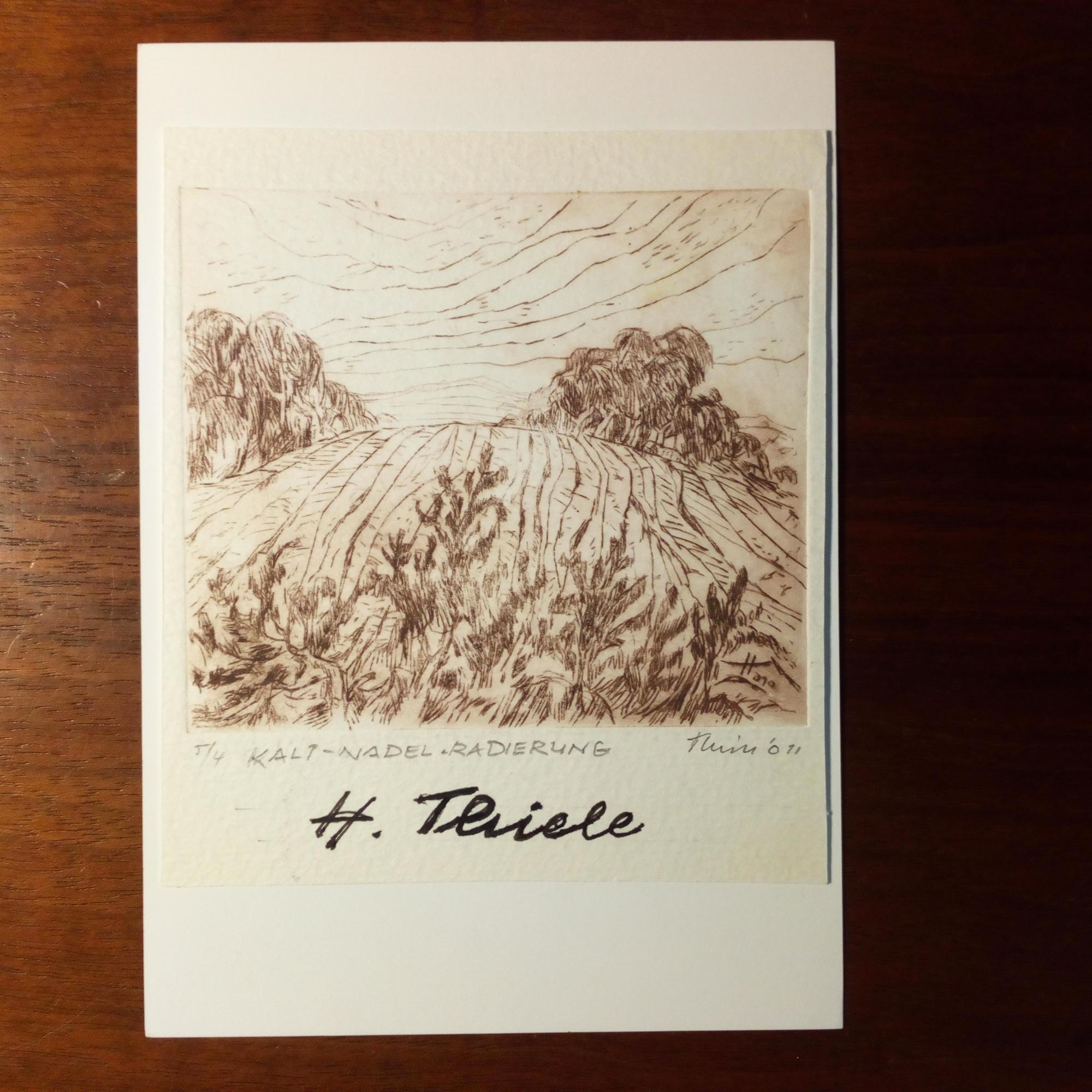 1934-2017, Maler der Lausitz - Karte mit e. Kaltnadel-Radierung (Landschaft) und U., e. Bleistift-Beschriftung 2010.