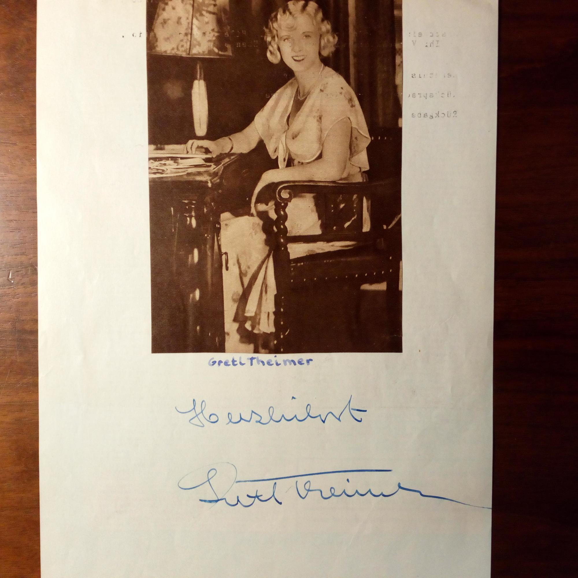 1911-72, Schauspielerin - E. u. U. unter auf 4° mont. Druck-Pfo. (etw. fleckig, aus einem Filmprogramm). Um 1930.
