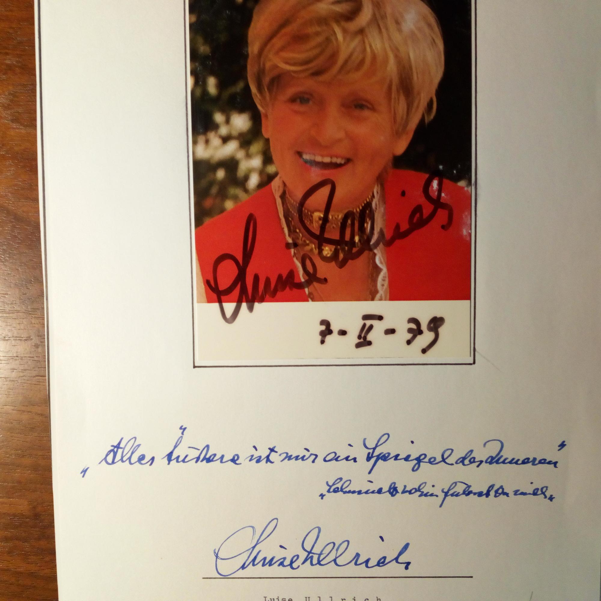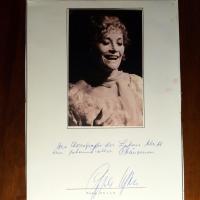 1911-85, Schauspielerin - E. Zitat u. U. unter auf 4° mont. Farb-Pfo. m. U. u. D. 7.2.1979 (geringe Abriebspuren). "Alles Äußere ist nur ein Spiegel des Inneren...".