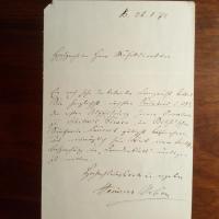 1837-1901, Violonist, Komponist u. Musikpädagoge - E. Brief mit U., Berlin 26.1.1871, 1 S. gr. 8°. An den kgl.-preuß. Musikdirektor in Liegnitz Johann Georg Goldschmidt (1823-1903, Dirigent und Komponist): ...Ein noch sehr unbekannter Komponist bittet Sie...der ersten Aufführung meiner Ouverture zu Schiller's Fiesco im Bilse'schen Sinfonie-Konzert...beizuwohnen... (Benjamin Bilse, 1816-1902, Orchesterleiter in Liegnitz).