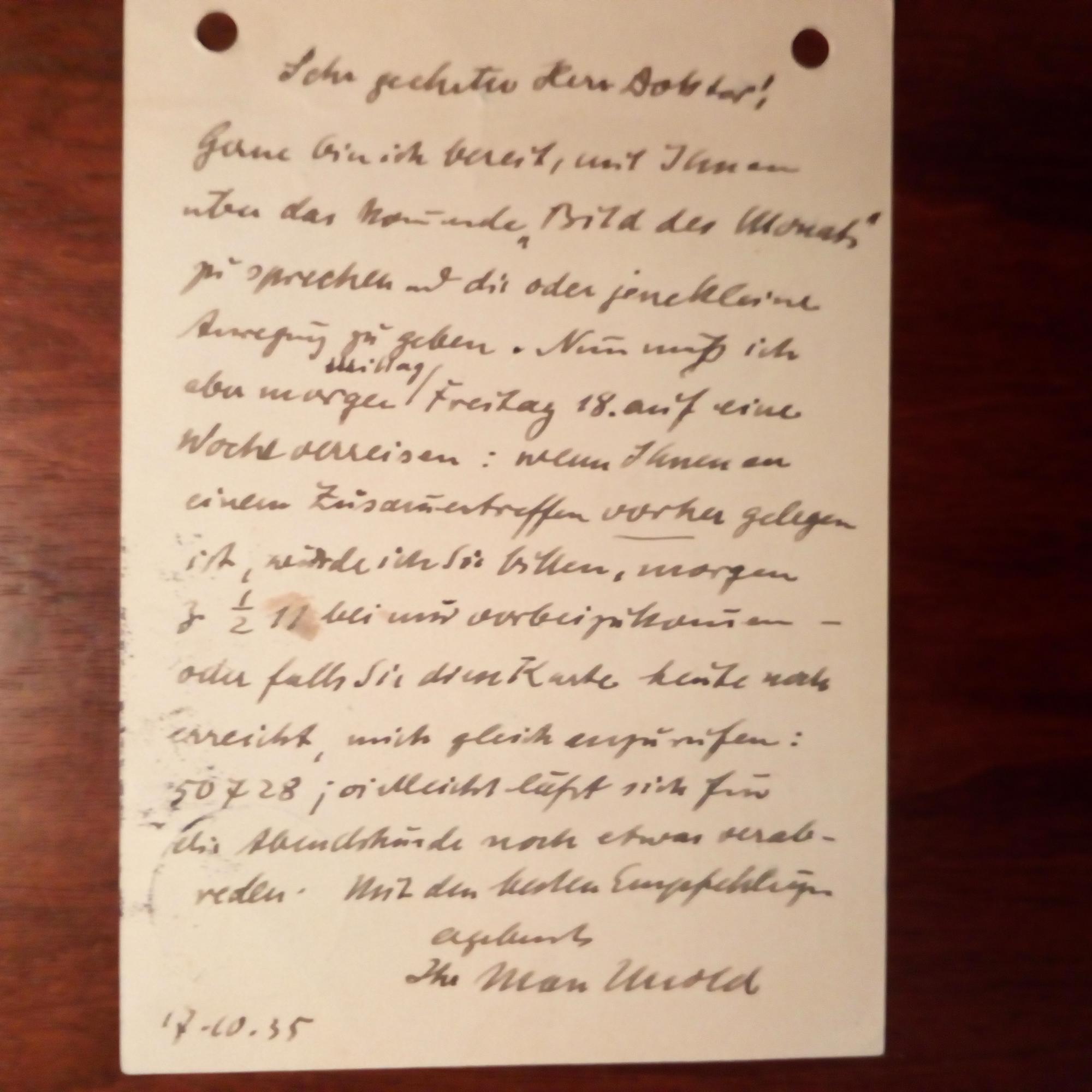 1885-1964, Maler und Graphiker - E. postal. Postkarte mit U., (München) 17.10.1935, ger. fleckig, gel. An Hans Bachmann in München: ...Gerne bin ich bereit, mit Ihnen über das kommende "Bild des Monats" zu sprechen und die oder jene kleine Anregung zu geben...