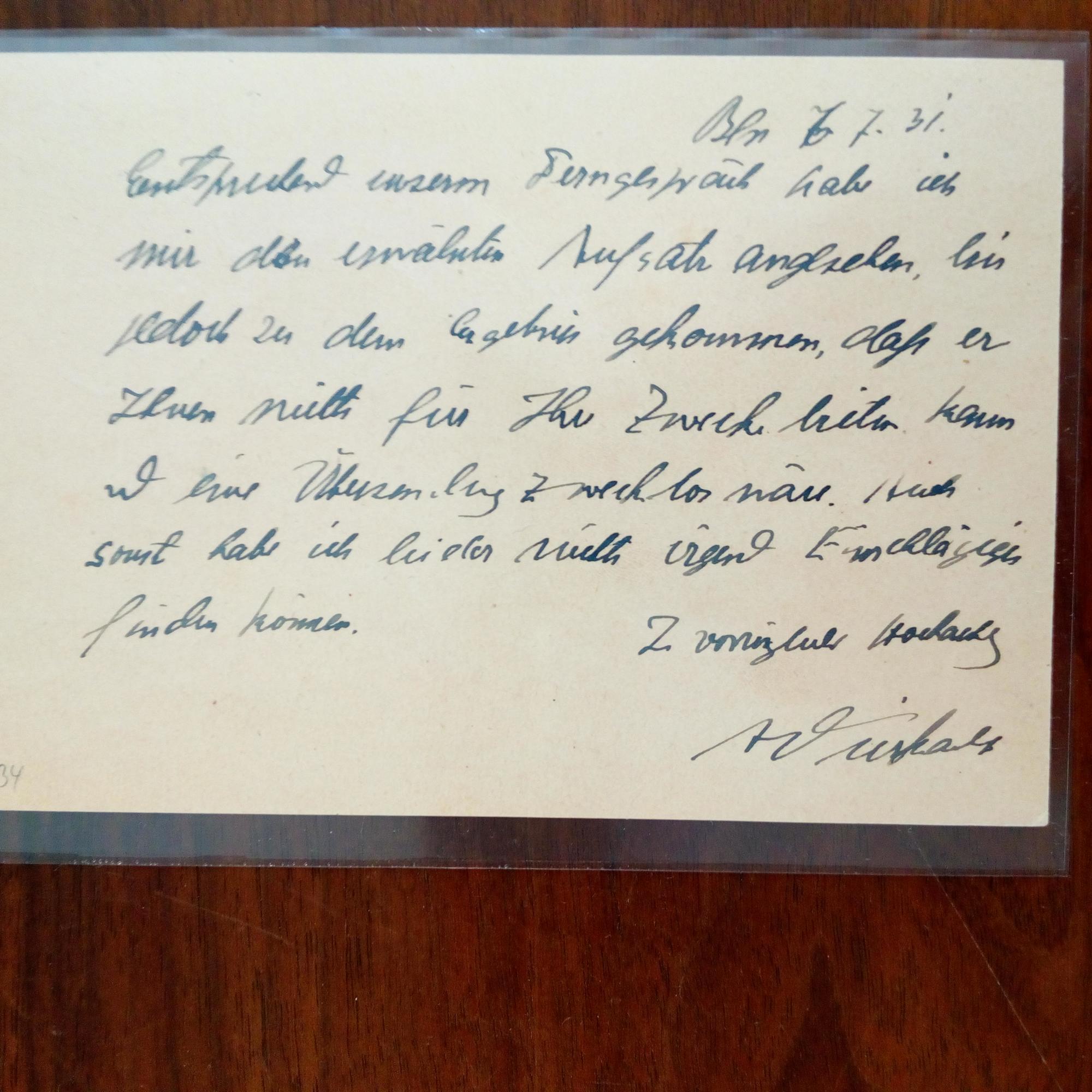 1867-1953, Soziologe - E. postal. Postkarte m. U., Berlin 6.7.1931, ger. Gebr.spuren. An die "Zentralredaktion deutscher Zeitungen" in Berlin: ...daß ich nichts für Ihre Zwecke bieten kann...