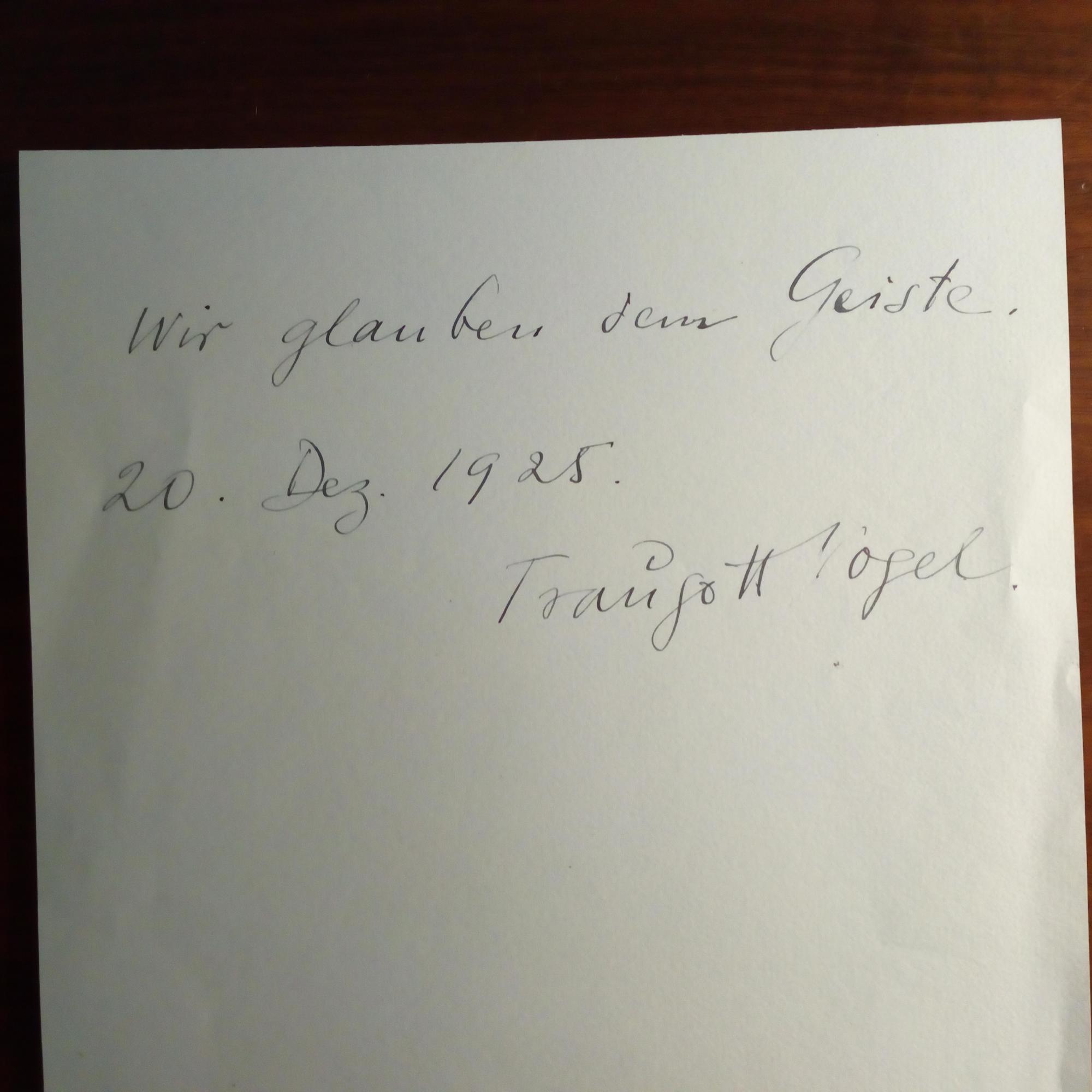 1894-1979, schweiz. Schriftsteller - 4°-Blatt m. e. Zitat, U. u. 20.12.1925. "Wir glauben dem Geiste".