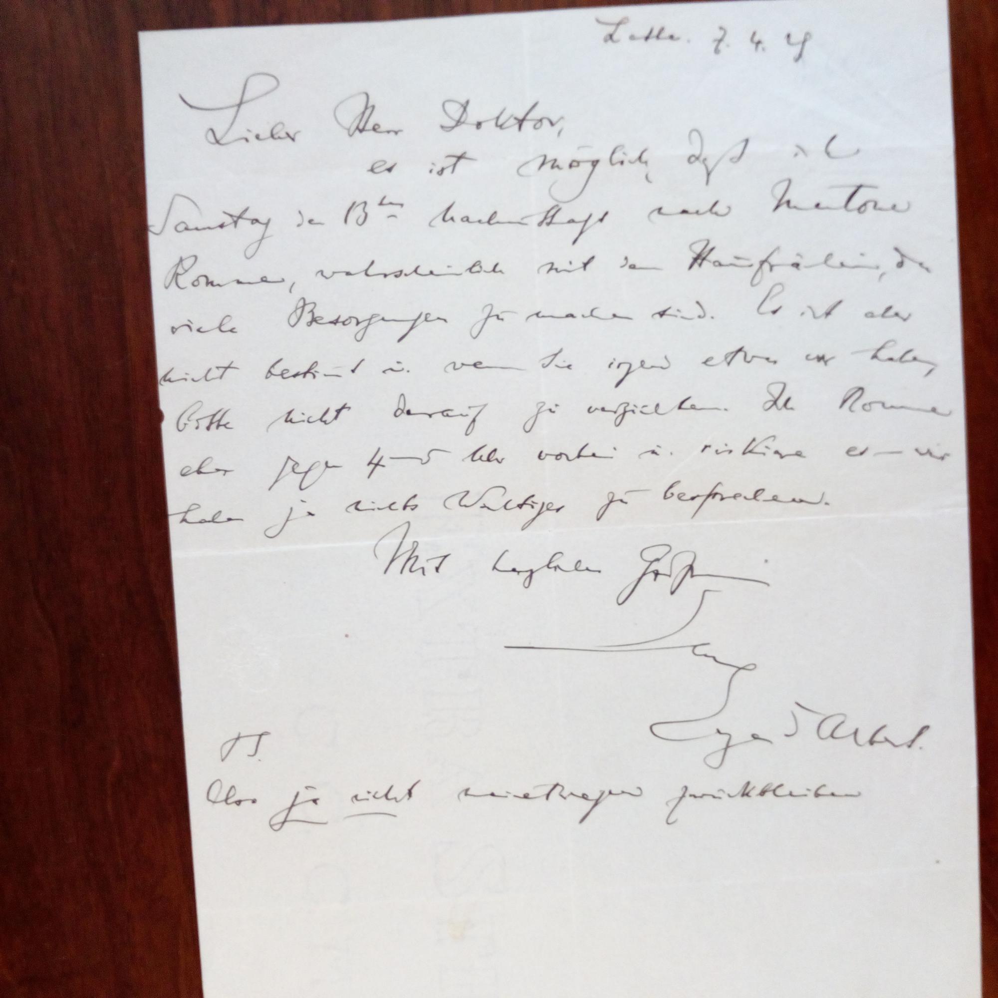 1864-1932, brit.-schweizer Pianist u. Komponist - 1. 2 e. Notenzeilen (ca. 4 Takte einer Partitur, Überschrift: "Garotte/ Mendelssohn oder Schubert"), ca. ½ S. 4°, beschn., mont., mit Widm. für A. von Löwenberg, Straubing 13.2.1886. 2. E. Brief mit U. und D. 1 5.1891, 2 S. kl. 8°. An den Dirigenten und Komponisten Paul Geisler (1856-1919) in Berlin: ...werde ich mir erlauben, Ihre Partitur morgen...abholen zu lassen u. durch eine ganz zuverlässige Person... 3. E. postal. Postkarte mit U., Lichterfelde 27.4.1891. Adr. wie vor. ...Die Partitur d. "Schiffbrüchig" möchte ich sehr gern kennen lernen...freue mich riesig darauf, -denn ich gehöre auch zu den "revolutionären"... 4. E. postal. Postkarte mit U., Coswig 24.9.1893. An den Chorleiter und Komponisten Siegfried Ochs (1858-1929) in Berlin: Fragt u.a., ob er die "Alt-Stimme im Alt-schlüssel oder im Violin-Schlüssel" schreiben solle. 5. E. Brief mit U., aufwendiger Briefkopf des Hotels "Continental" in Berlin, 21.11.1893, 1 S. folio, Altersspuren. Adr. wie vor. Da dieser einen "Klavierauszug" verloren habe, leiht er ihm für eine Abschrift den eigenen. 6. E. postal. Postkarte mit U., Dresden 17.11.(1895), etw. fleckig. Lädt den Komponisten und Kritiker Eugen Lindner (1858-1915) zur Uraufführung seiner Oper "Ghuismonde" ein. 7. Programmblatt für ein Konzert in Leipzig am 29.10.1900 (Leitung Hans Winderstein) mit Bleistift-U. 8. Kl. Blatt mit U. Auf Rückseite e. Notenzeile (drei Takte des Liedes "Die Wanderer"), U. und D. 21.12.1904 des Komponisten Hans Hermann (1870-1931). 9. E. Brief mit U., Meina am Lago Maggiore 10.6.1907, 2 S. 8°. An den Komponisten Otto Lohse (1858-1925): ...bringe den Einakter nur dann heraus, wenn Sie dirigieren können... u. betr. Premieren-Termins seiner Oper "Tragaldabas". 10. E. postal. Postkarte mit U., (Wien 19.9.1912). An den Librettisten Richard Batka (1868-1922): Wohl Details zur Uraufführung seiner Oper "Der Stier von Olivera" im März. 11. E. postal. Postkarte an Lohse, seit 1912 Operndirektor in Leipzig: ...die Rückreise von Holland in die Schweiz war schauerlich. Wir warten hier bis Ende Mai... 12. E. Brief mit U., La Montorola bei Ventimiglia 1.6.1928, 2 S. kl. 4°, gepr. Monogramm, Gebr.spuren. Adr. wie vor. Betr. Aufforderung, der Wüllner-Stiftung beizutreten, ...nur dürfen Sie auch keinen Beitrag von mir erwarten, weil ich in tiefster Einsamkeit sehr zurückgezogen lebe... 13. E. Brief mit U., Bordighera (1928), 2 S. 4°, gel. An Löwy: ...Das einzige...wäre das Vorspiel zum 2ten Akt meiner neuen Oper "Die schwarze Orchidee", welches aus einem Walzer besteht... 14. E. Brief mit U., Latte bei Ventimiglia 7.4.1929. An "Herrn Doktor": ...ist möglich, daß ich...nach Mentone (Lago Maggiore) komme, wahrscheinlich mit dem Hausfräulein, da viele Besorgungen zu machen sind... 15. E. Brief mit U., Latte 23.11.1929, ¾ S. 4°. ...erhalte Ihr Geehrtes...leider zu spät um Ihnen den gewünschten Betrag...zu senden... Beiliegen 2 gedruckte Klavierauszüge aus den Opern "Tiefland" und "Die schwarze Orchidee" (beide 1928).