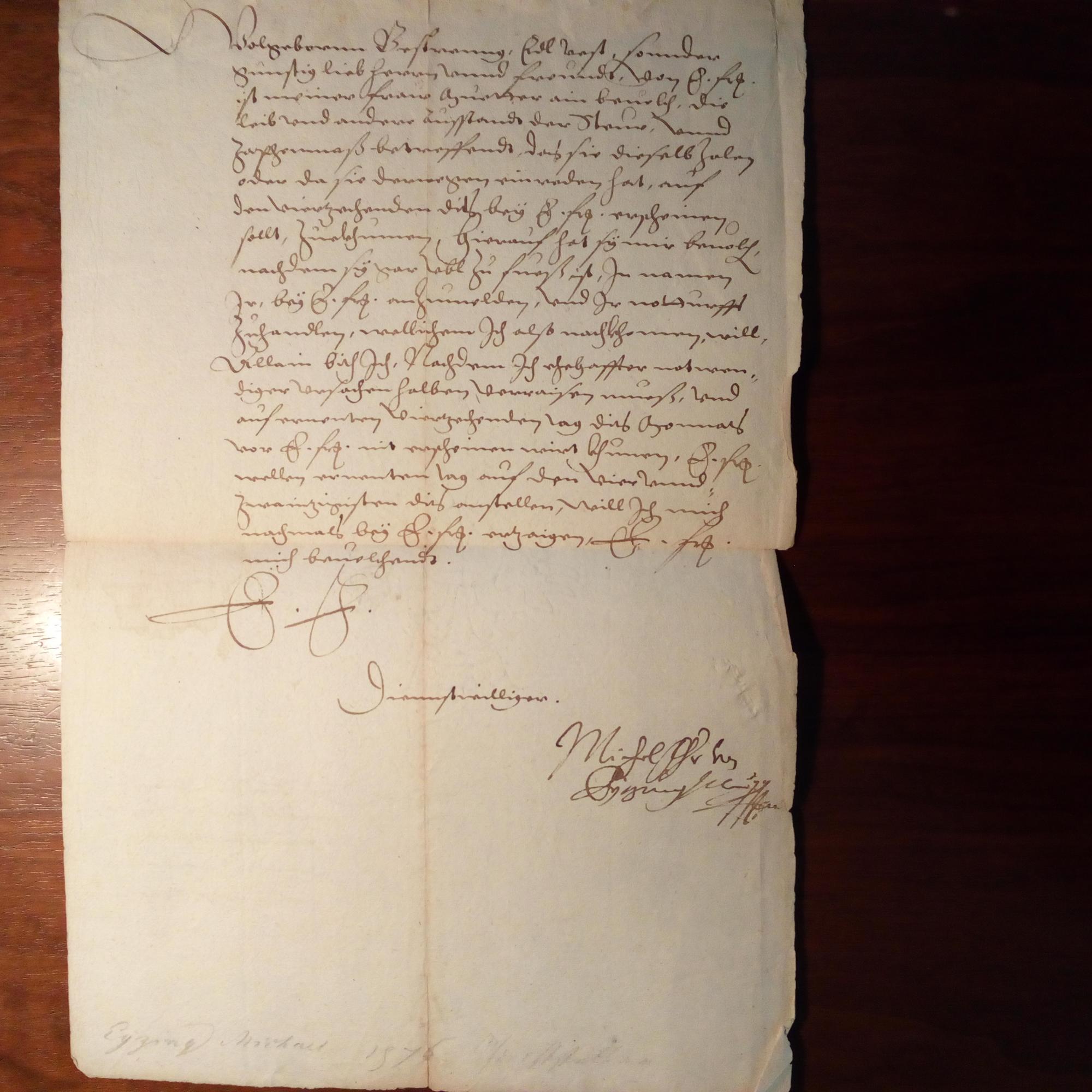 1530-98, österr. Gelehrter, Publizist und Staatsmann, hier als Kammerherr von Kaiser Rudolf II. - Brief mit U., (Wien) 1.5.1576, ¾ S. folio, Bearb.notizen, ger. Altersspuren. Sagt dem befreundeten Freiherrn von Kötzing seine Unterstützung zu.