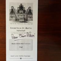 1926-2013, frz. Organistin - Programmblatt von 1999 für ein Kirchenkonzert in Helmstadt (bei Würzburg), mit U.
