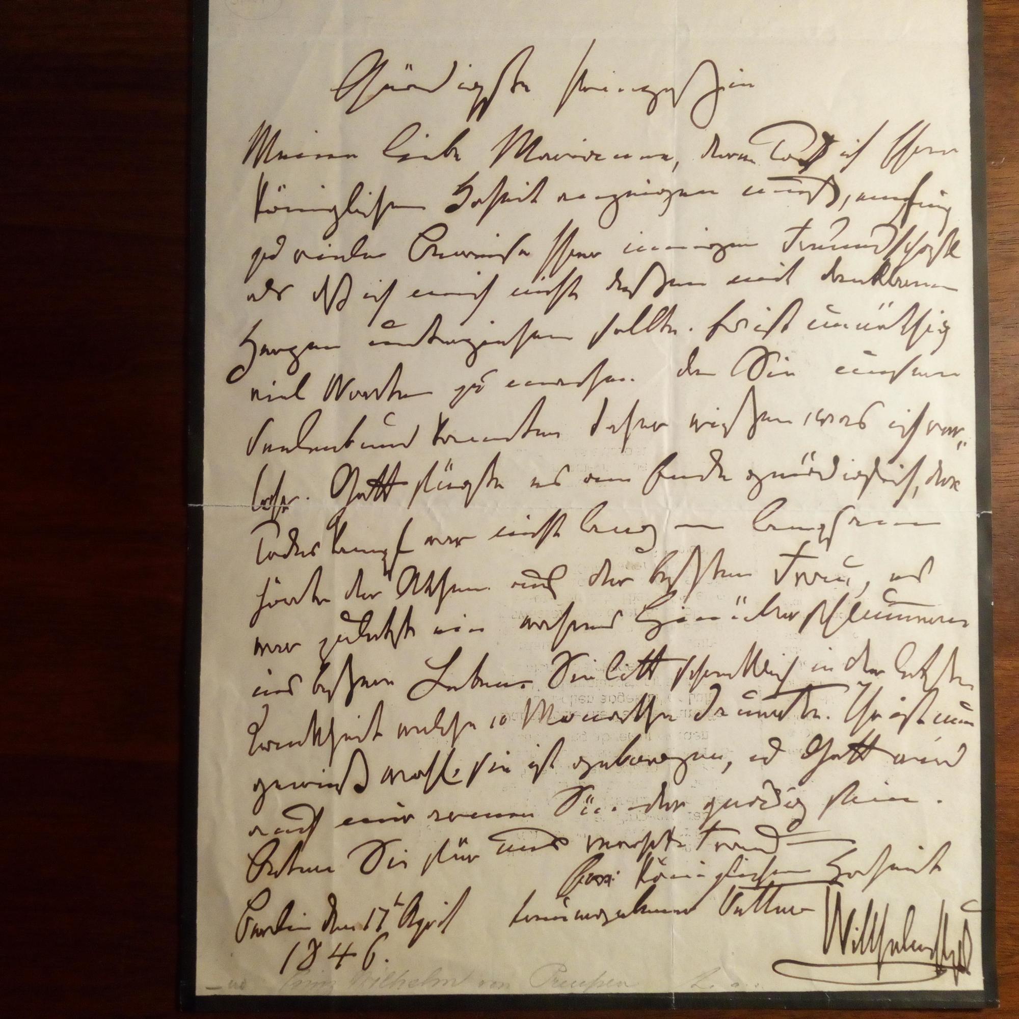 1783-1851, Prinz (Bruder von König Friedrich Wilhelm III.), General - E. Br. m. U., Berlin 17.4.1846, 1 S. 4°, schwarzer Rand, kl. Altersspuren. Schreibt einer Prinzessin ausführl. zum Tode seiner Gattin Maria Anna Amalie von Hessen-Homburg (geb. 1785).