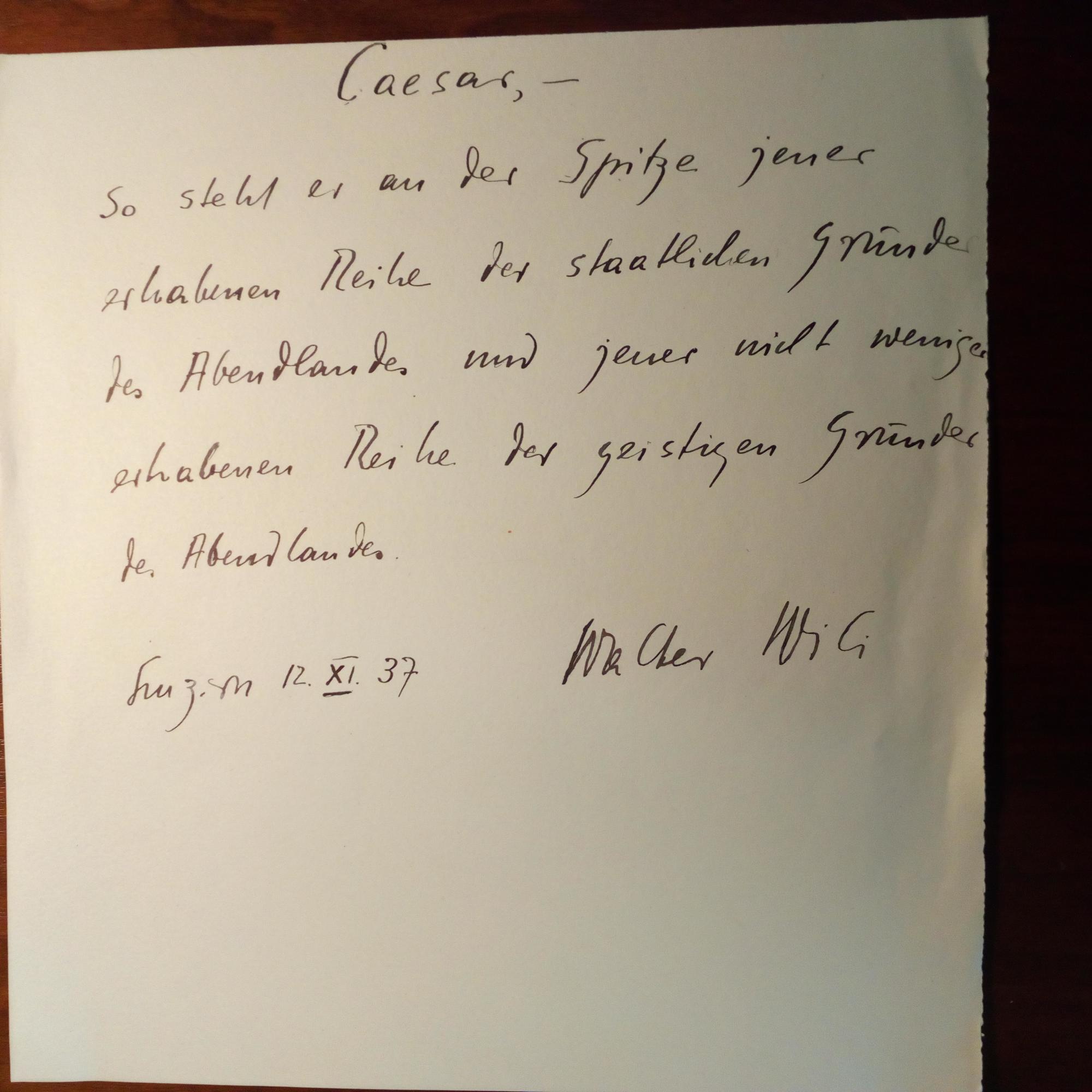 1900-75, klass. Philologe - Gr. 4°-Blatt mit e. Zitat ("Caesar"), U., O. und D. Luzern 12.12.1937.
