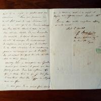 1796-1860, frz. Maler - E. Faltbrief mit U., 2.4.1832, 2 ½ S. 8°, e. Anschrift, Siegelrest, präphilatelist. Stempel. Als Direktor der Kunstschule von Lyon an Herrn Dard in Wien betr. der Unkostenerstattung für einen Schüler.
