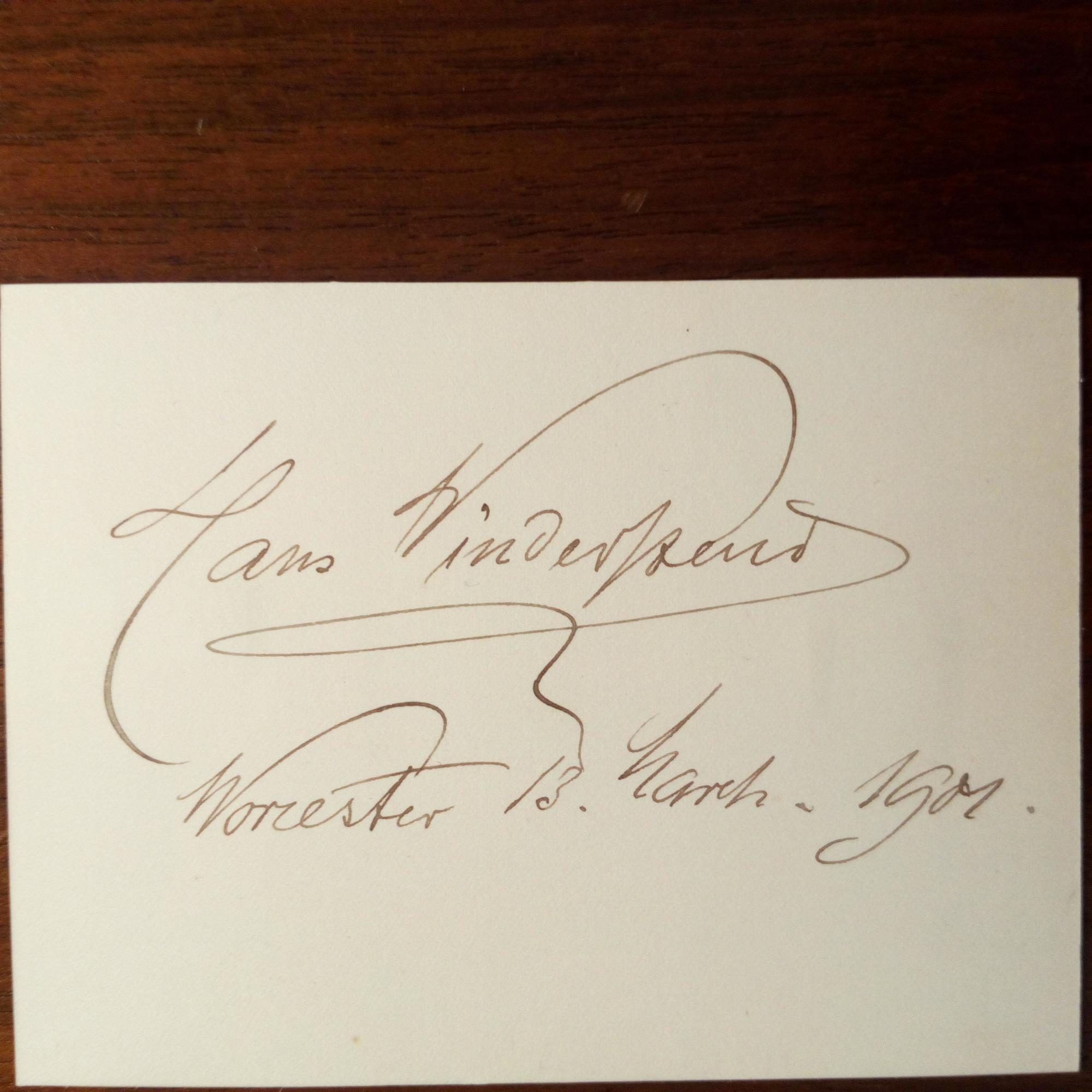 1856-1925, Dirigent und Komponist - Kärtchen m. schöner U. u. Worcester 13.3.1901.
