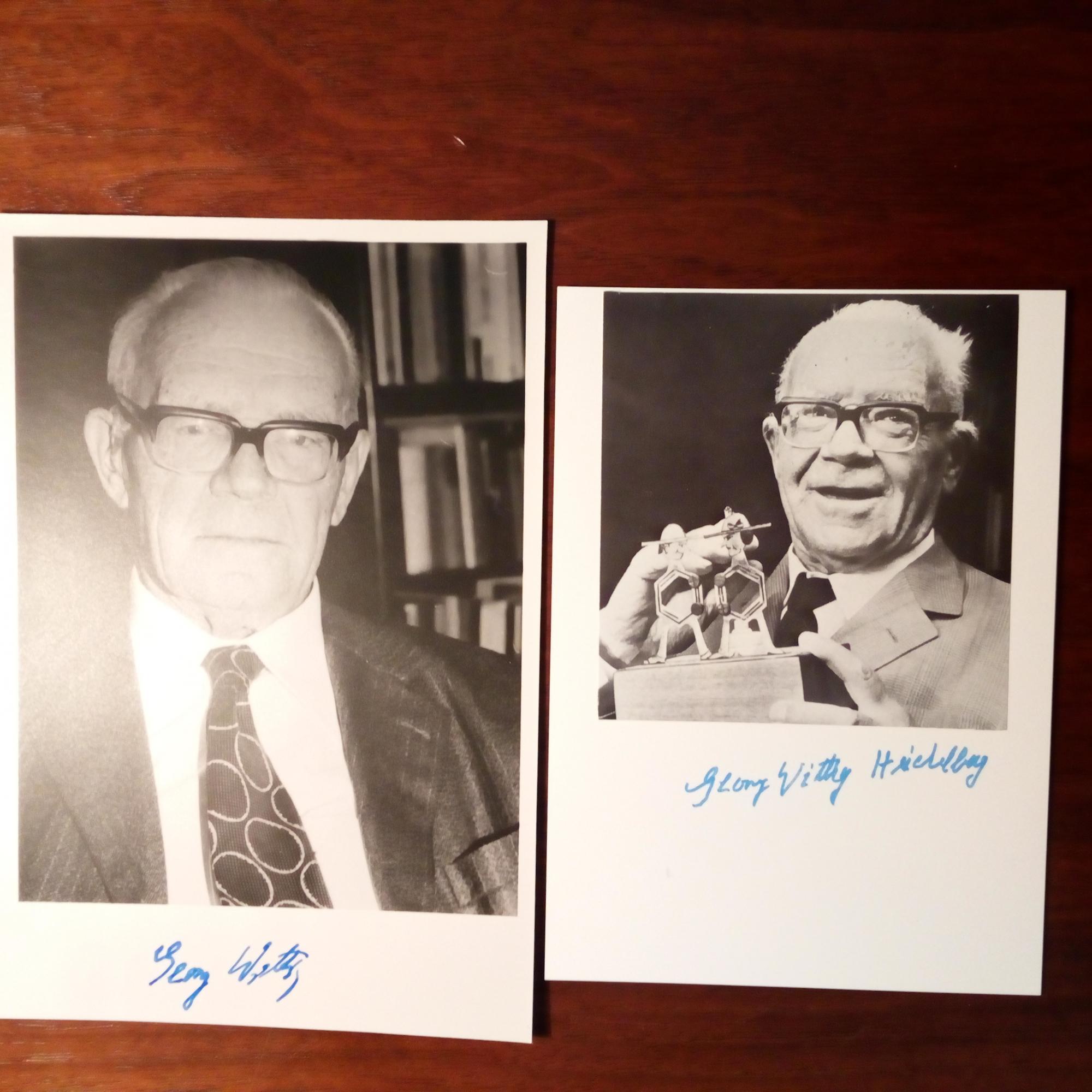 1897-1987, Chemiker - Karte mit Pfo. (Druck), U. und O. Heidelberg. Beiliegen: Pfo. (ca. 8°) mit U. und 4°-Blatt mit Briefmarken mit Nobelpreis-Motiven und U. (Poststempel 16.2.1979).