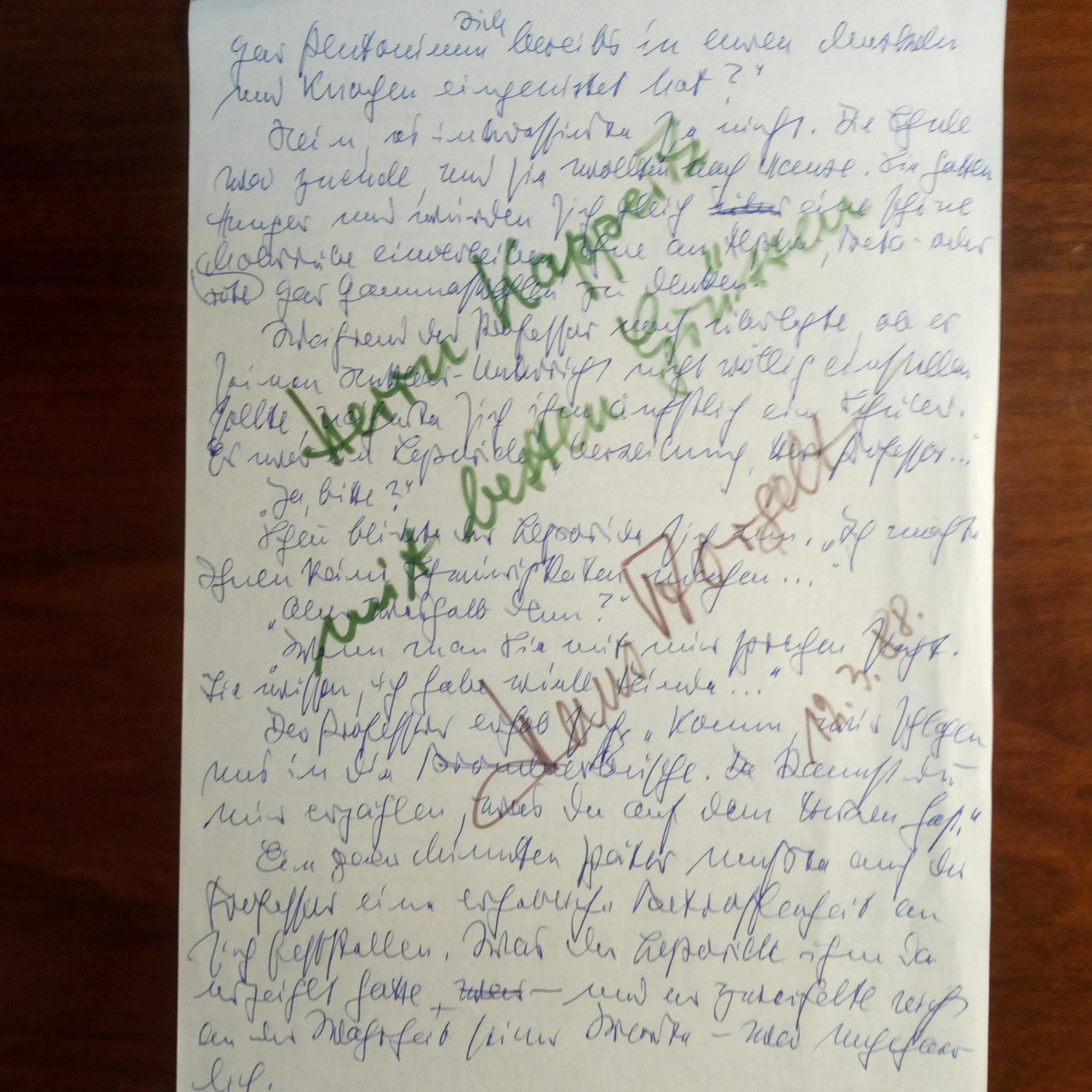 1914-2000, Schausp., Regisseur und Schriftsteller - 4°-Seite aus einem e. Arbeitsmanuskript (wohl zu seinem Roman "Das war der Frühling in Berlin"). Nachträgliche e. Widm. m. U., 12.3.1988.