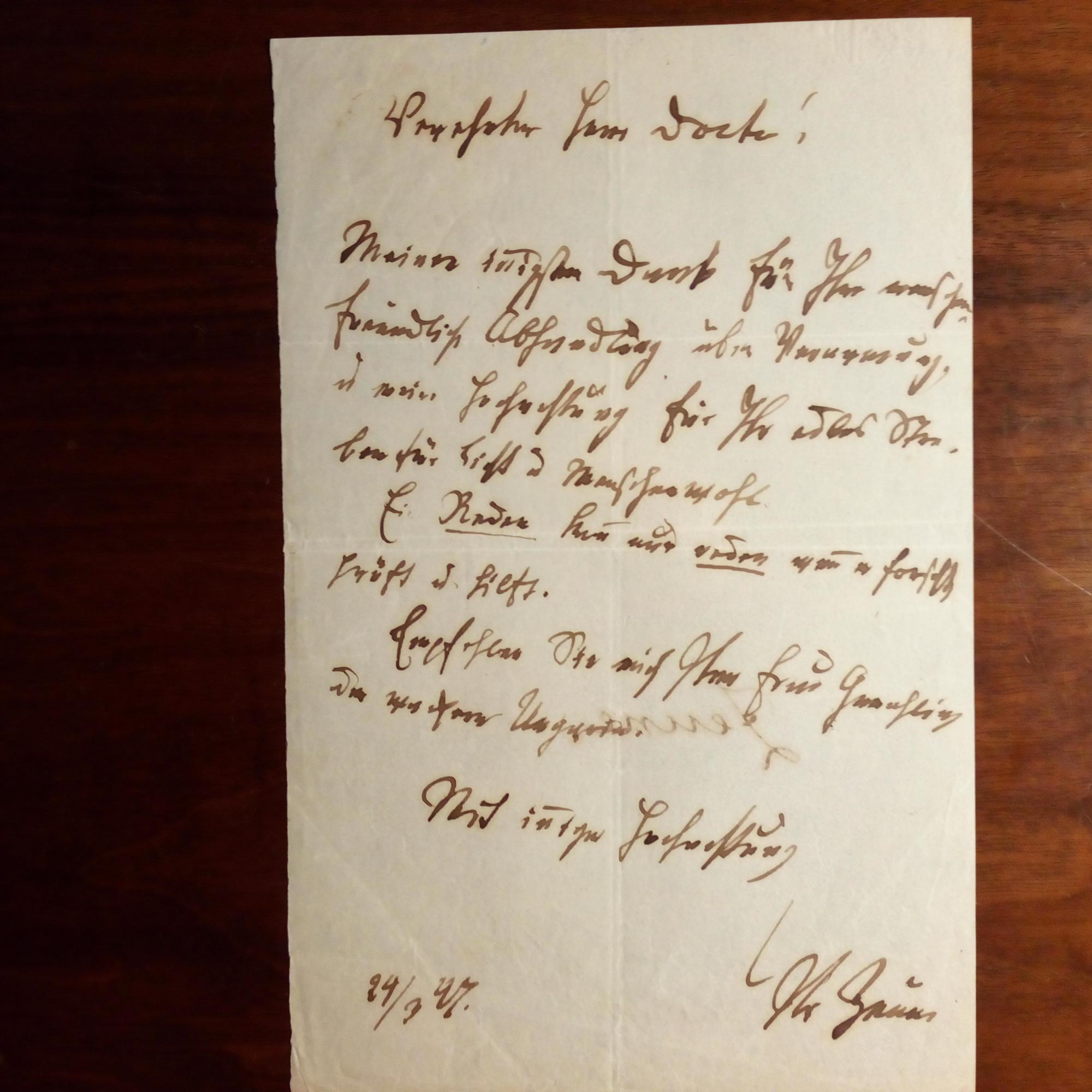 1843-1922, österr. Komponist - E. Br. m. U., (Wien) 10.3.1903, 2 S. 4°, Br.kopf als Hofkapellmeister, kl. Randschaden. An den österr. Komponisten und Dirigenten Eduard Kremser (1838-1914) wegen der zu hohen Kosten des Opernchores u.a. Organisatorischem. Beiliegt ein e. postal. Umschlag (U. im Abs.).